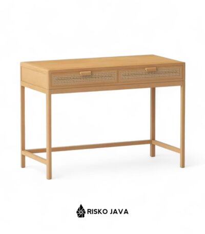 NDICKA – Meja Belajar Kombinasi Rotan / Meja Kayu Jati Minimmalis / Meja Kerja Laci Penyimpanan