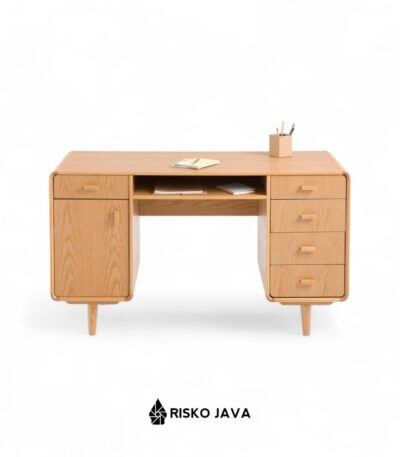 OUKILI – Meja Belajar Kayu Jati / Meja Salur Laci Penyimpanan / Meja Kerja Minimalis