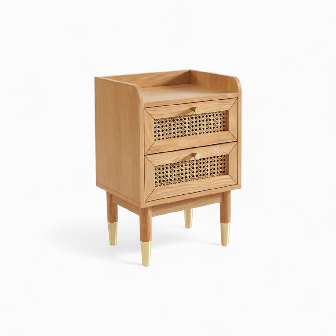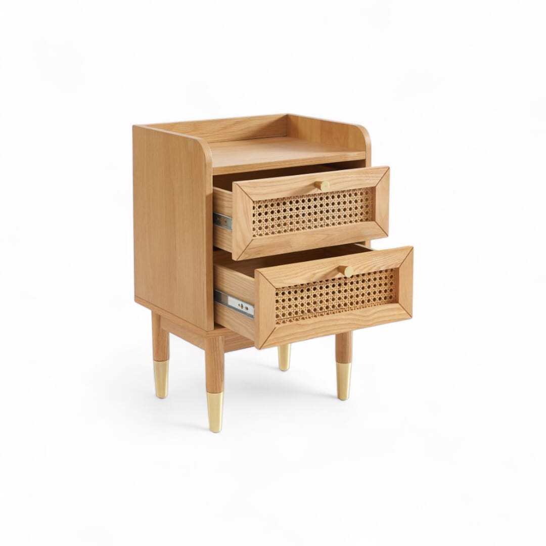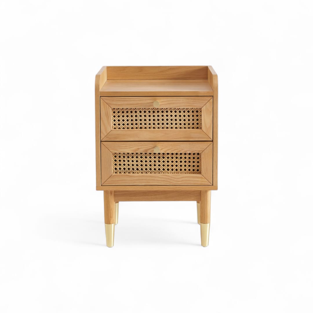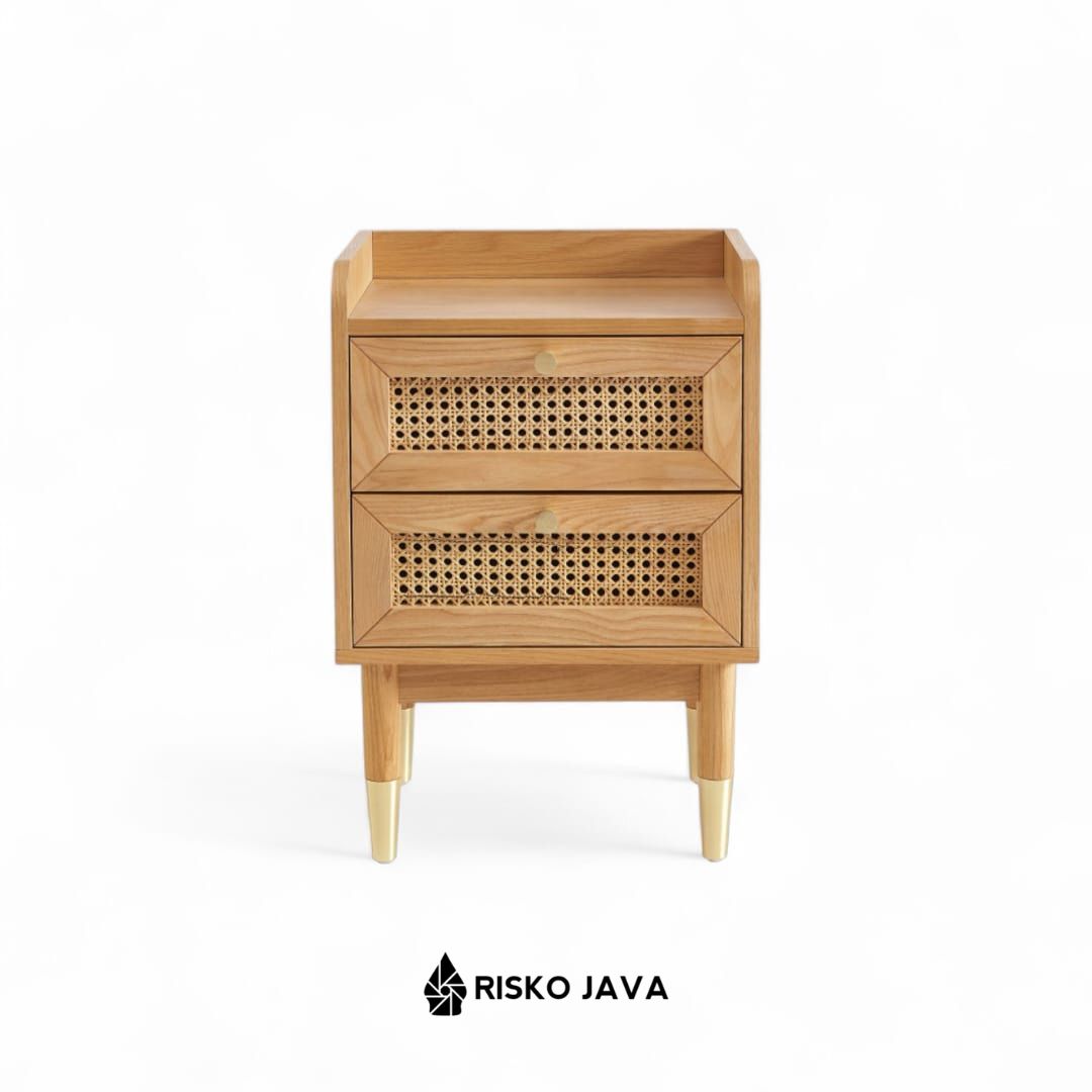 MLAKAR – Nakas Kayu Jati / Nakas Laci Kombinasi Rotan / Bedside Table Minimalis
