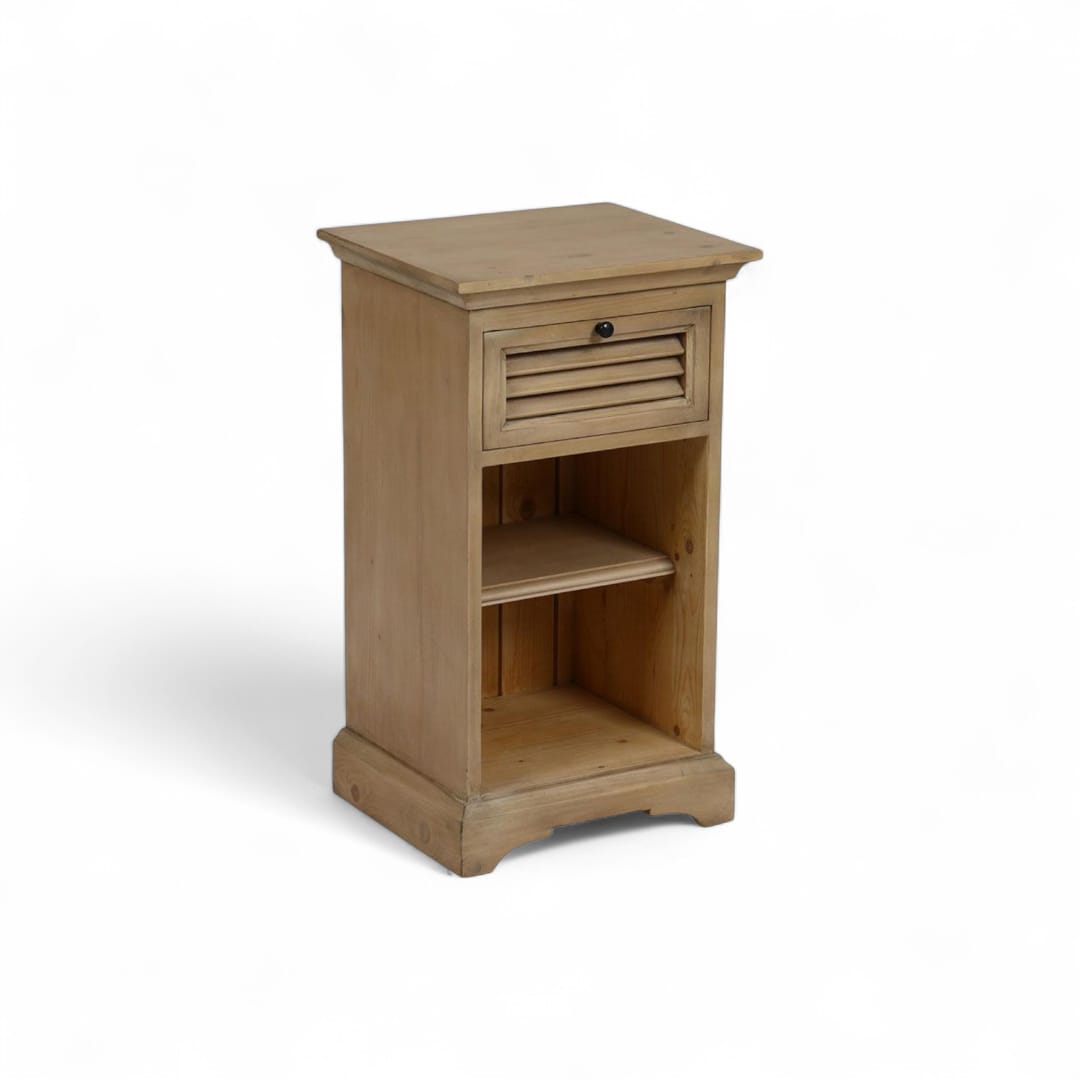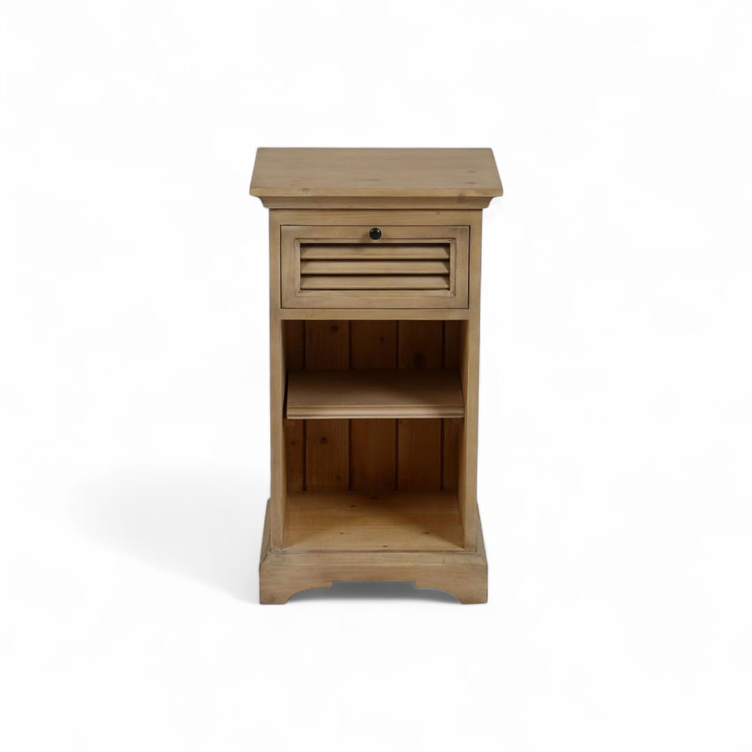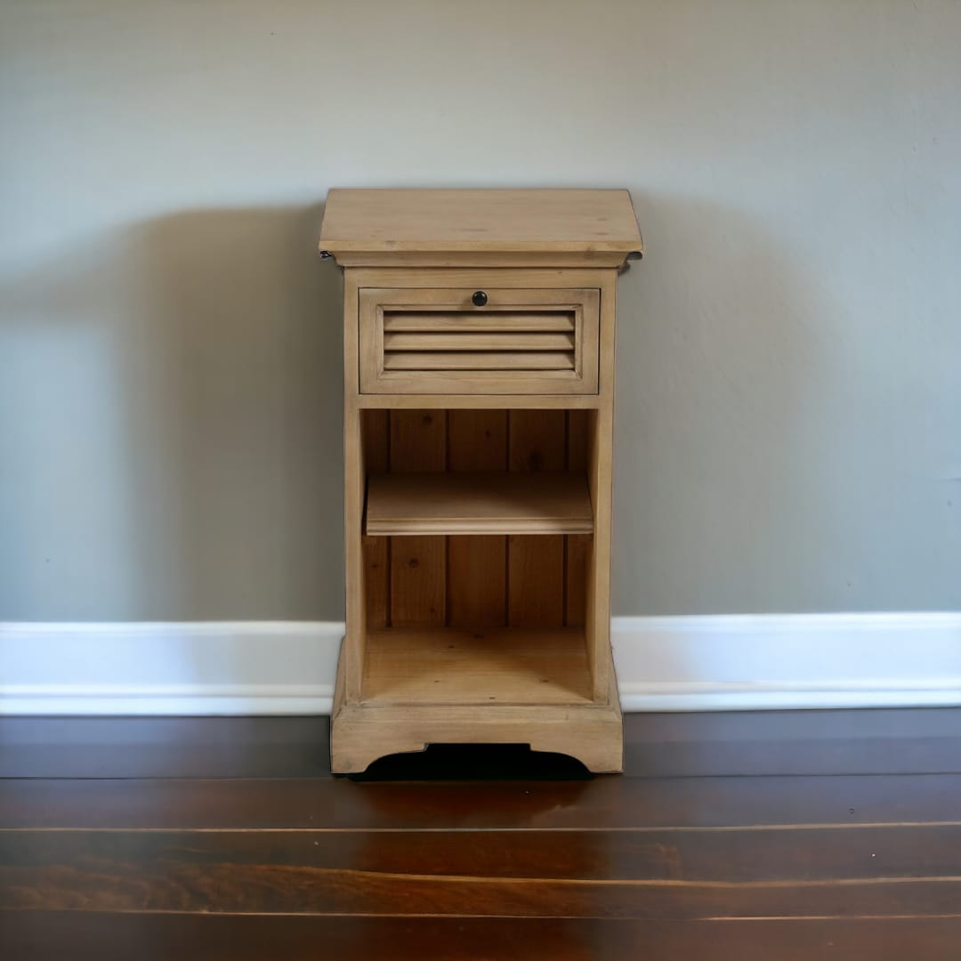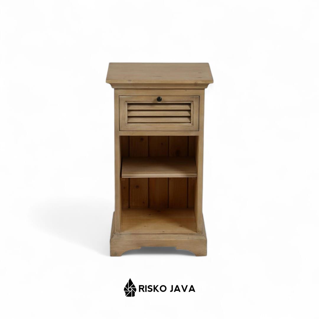 Hadirkan gaya dan fungsi dengan nakas kayu jati minimalis ini. Dilengkapi dengan laci penyimpanan bergaris-garis sebagai ventilasi pada bagian depan, memberikan sentuhan estetika sekaligus memastikan sirkulasi udara. Tambahan 2 ruang penyimpanan terbuka di bawahnya membuatnya ideal untuk menyimpan buku, aksesori, atau barang favorit lainnya. Cocok untuk melengkapi kamar tidur Anda dengan nuansa modern yang praktis dan elegan.