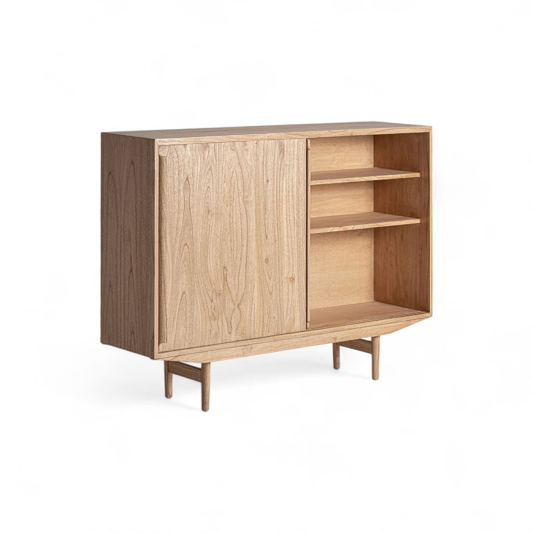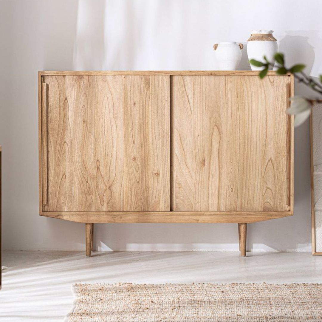 GENNARO – Bufet Kayu Jati Pintu Sliding / Cabinet Minimalis Retro / Bufet Ruang Penyimpanan
