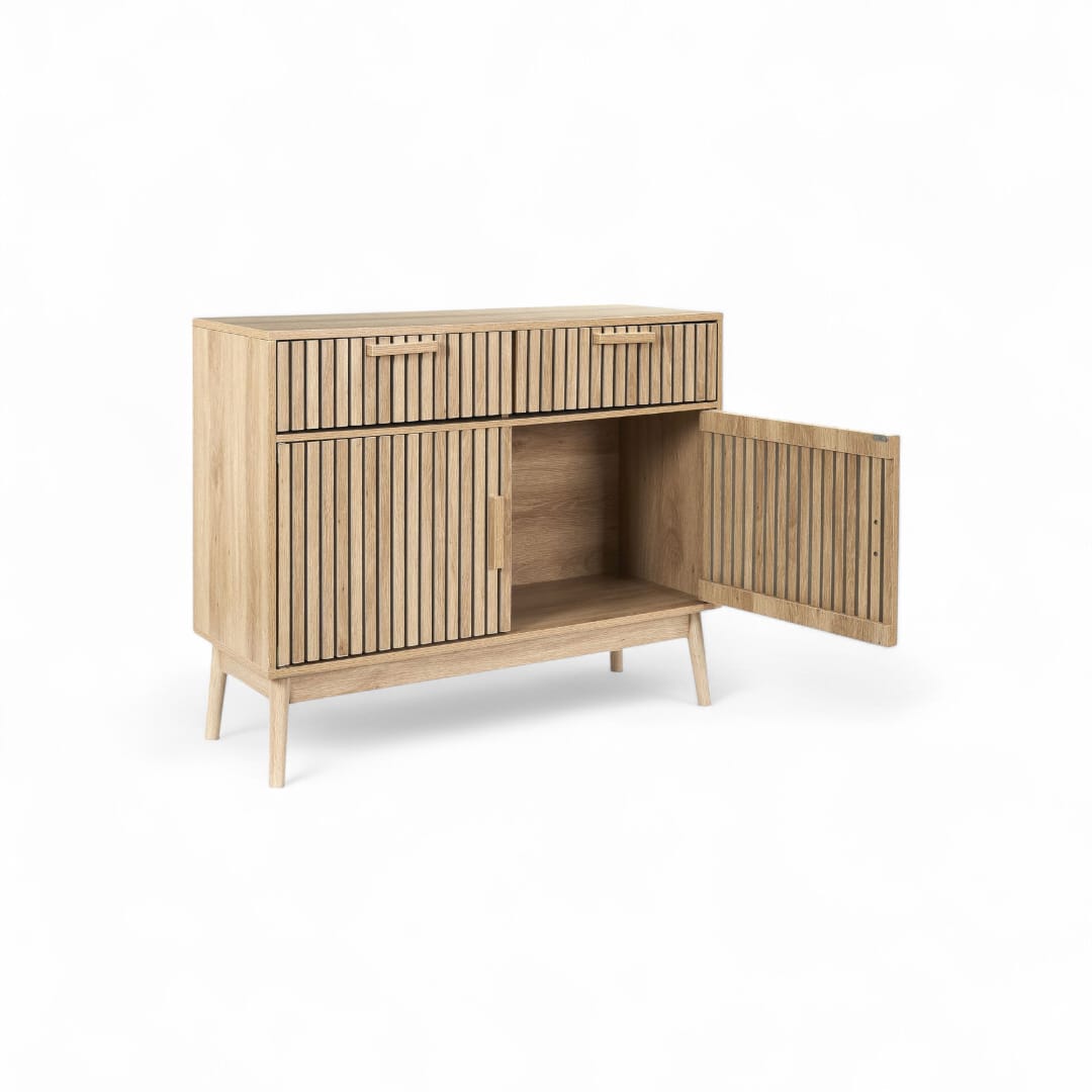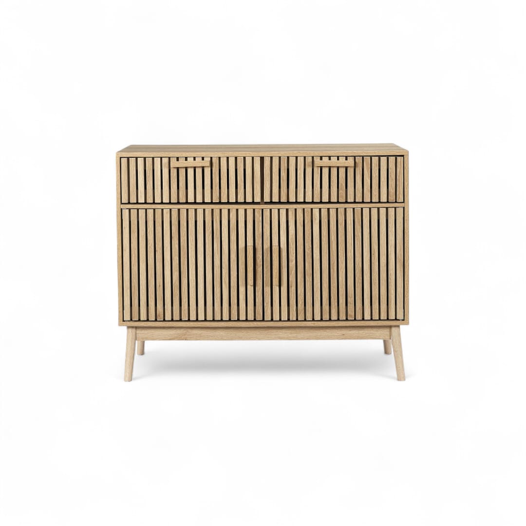 Bufet kayu jati minimalis retro ini menghadirkan desain klasik dengan sentuhan modern yang unik. Dilengkapi ruang penyimpanan utama dengan 2 pintu bergaris salur dan tambahan 2 laci penyimpanan di atasnya, bufet ini menawarkan fungsionalitas yang maksimal. Detail garis-garis salur pada pintu dan laci memberikan karakter estetis yang menawan, menjadikannya pilihan ideal untuk melengkapi ruang tamu Anda dengan gaya retro yang elegan!