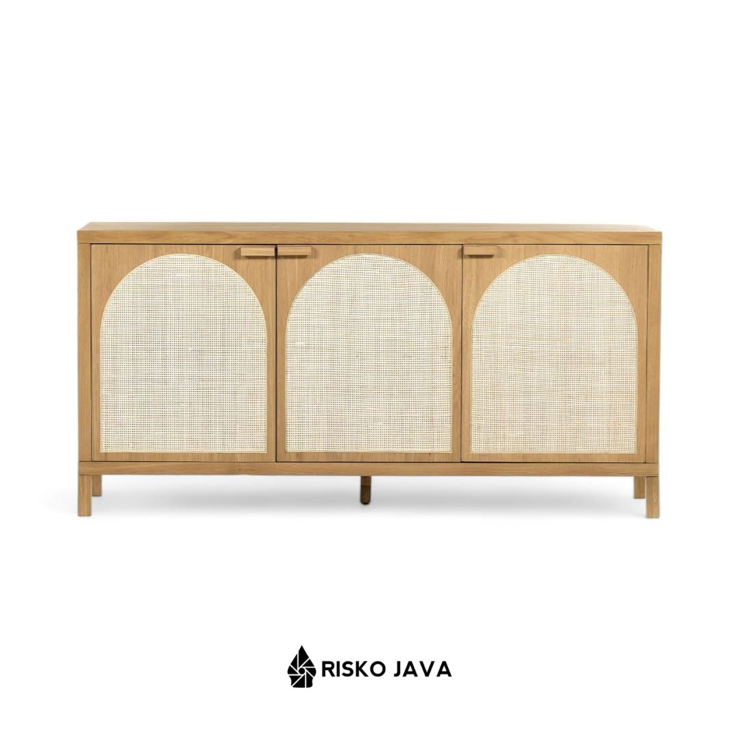 MATIJA – Bufet Kayu Jati / Cabinet Ruang Tamu / Bufet Minimalis Kombinasi Rotan