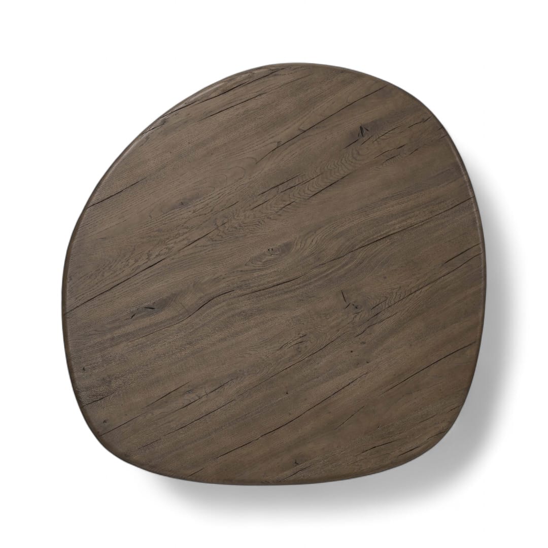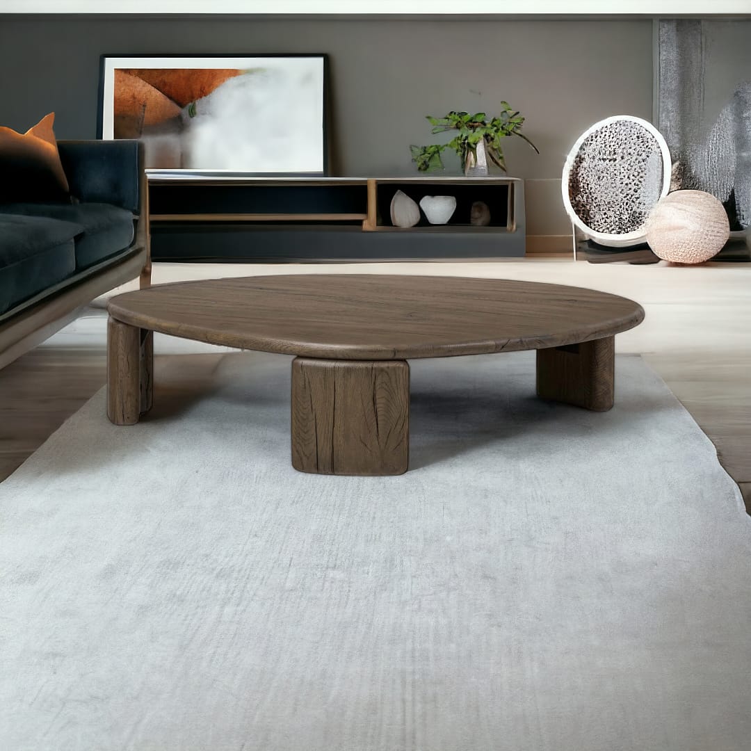 Meja ruang tamu kayu jati minimalis modern ini memiliki bentuk bulat tidak beraturan yang artistik, dipadukan dengan kaki 3 tumpuan yang kokoh. Desainnya yang unik memberikan karakter tersendiri pada ruang tamu Anda, sementara material kayu jati solid menambah kesan alami dan hangat. Meja ini sempurna untuk Anda yang mencari sentuhan modern dan estetik yang berbeda, menciptakan pusat perhatian di ruang tamu dengan gaya minimalis.