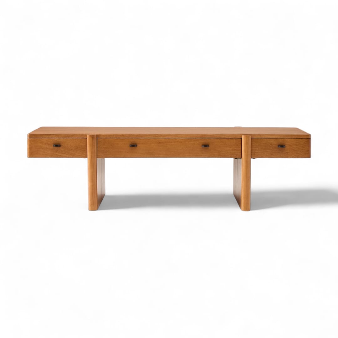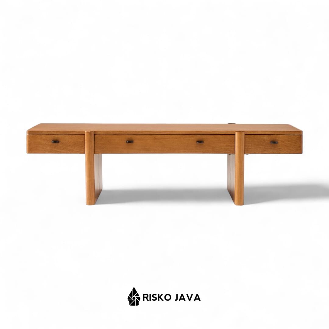 Bawa gaya modern ke ruang tamu Anda dengan meja kopi kayu jati minimalis ini. Dikenal dengan desain bulat yang bersih dan 3 laci penyimpanan yang fungsional, meja ini juga dilengkapi dengan kaki dua tumpuan yang stabil. Ideal untuk menambahkan sentuhan elegan sekaligus praktis, meja ini adalah pilihan sempurna untuk menciptakan suasana yang stylish dan terorganisir di rumah Anda.