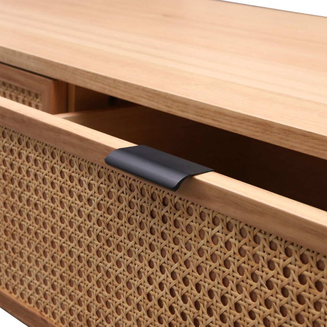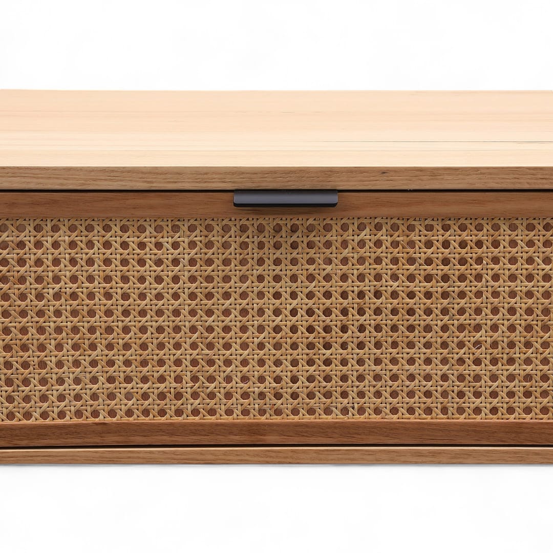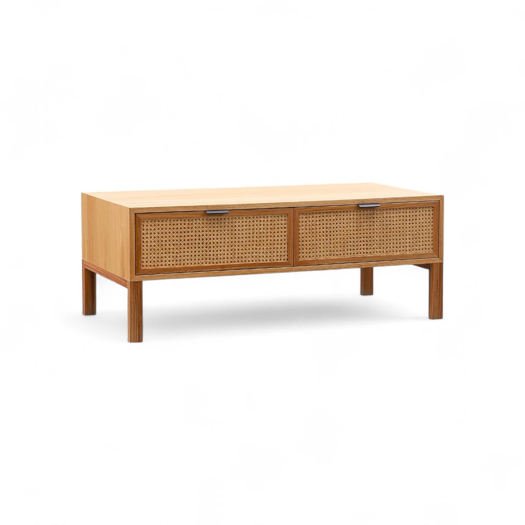 Meja ruang tamu kayu jati minimalis modern ini menampilkan desain persegi panjang yang elegan, lengkap dengan dua laci penyimpanan yang menggunakan kombinasi rotan. Laci rotan memberikan sentuhan tekstur yang unik dan memikat, menambah keindahan visual sambil menawarkan fungsionalitas. Terbuat dari kayu jati berkualitas tinggi, meja ini memadukan kehangatan alami dengan desain modern, menciptakan ruang tamu yang stylish dan terorganisir.
