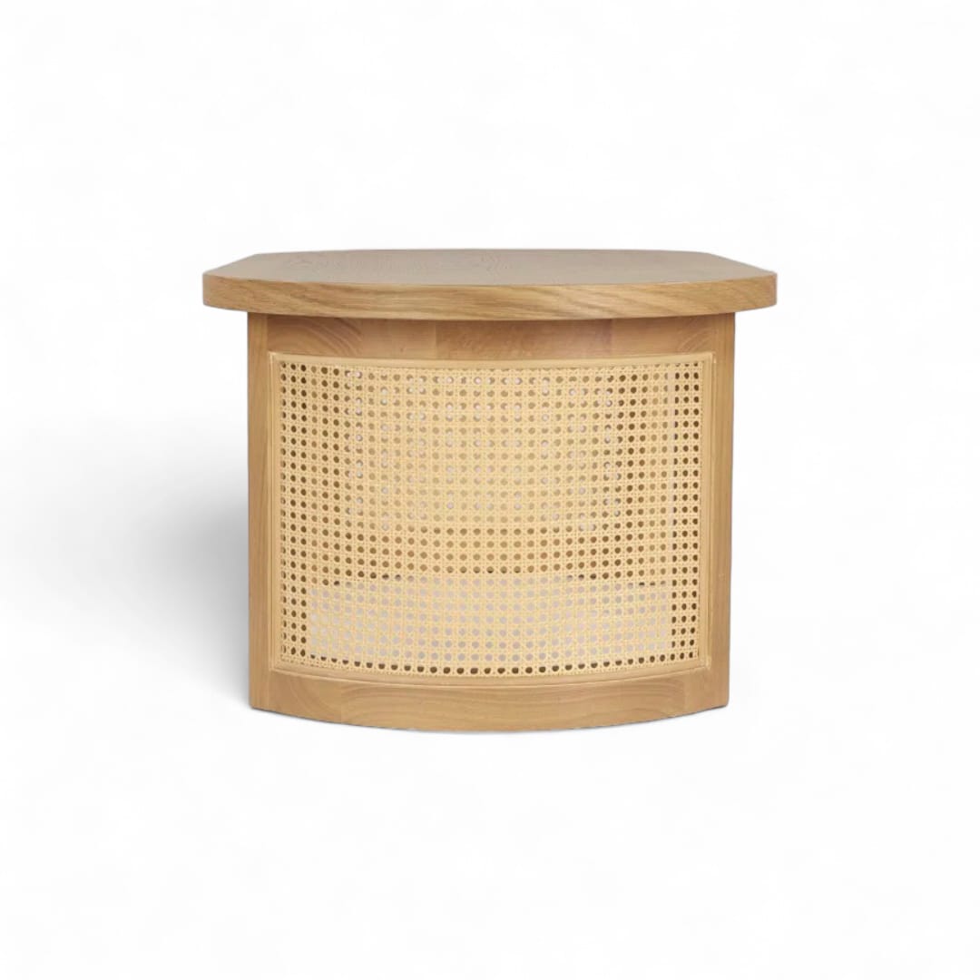 Ciptakan suasana modern yang elegan di ruang tamu Anda dengan meja kayu jati minimalis ini. Kombinasi rotan yang menawan berpadu dengan bentuk persegi panjang sudut lengkung, memberikan sentuhan chic dan kontemporer. Dilengkapi dengan dua kaki tumpuan yang kokoh, meja ini menggabungkan keindahan desain minimalis dengan fungsionalitas praktis. Pilihan sempurna untuk menambahkan gaya dan kehangatan pada ruang tamu Anda.
