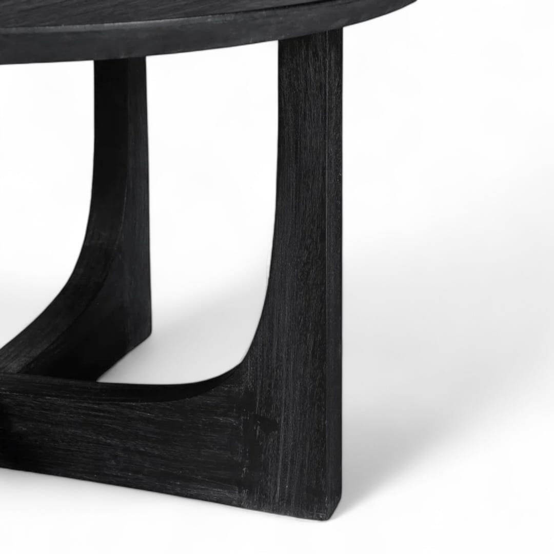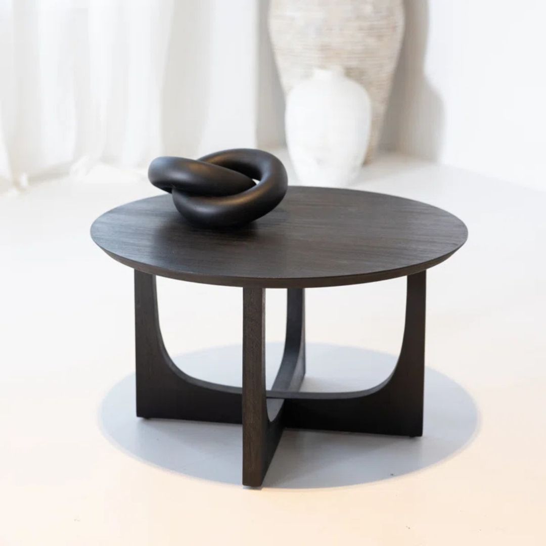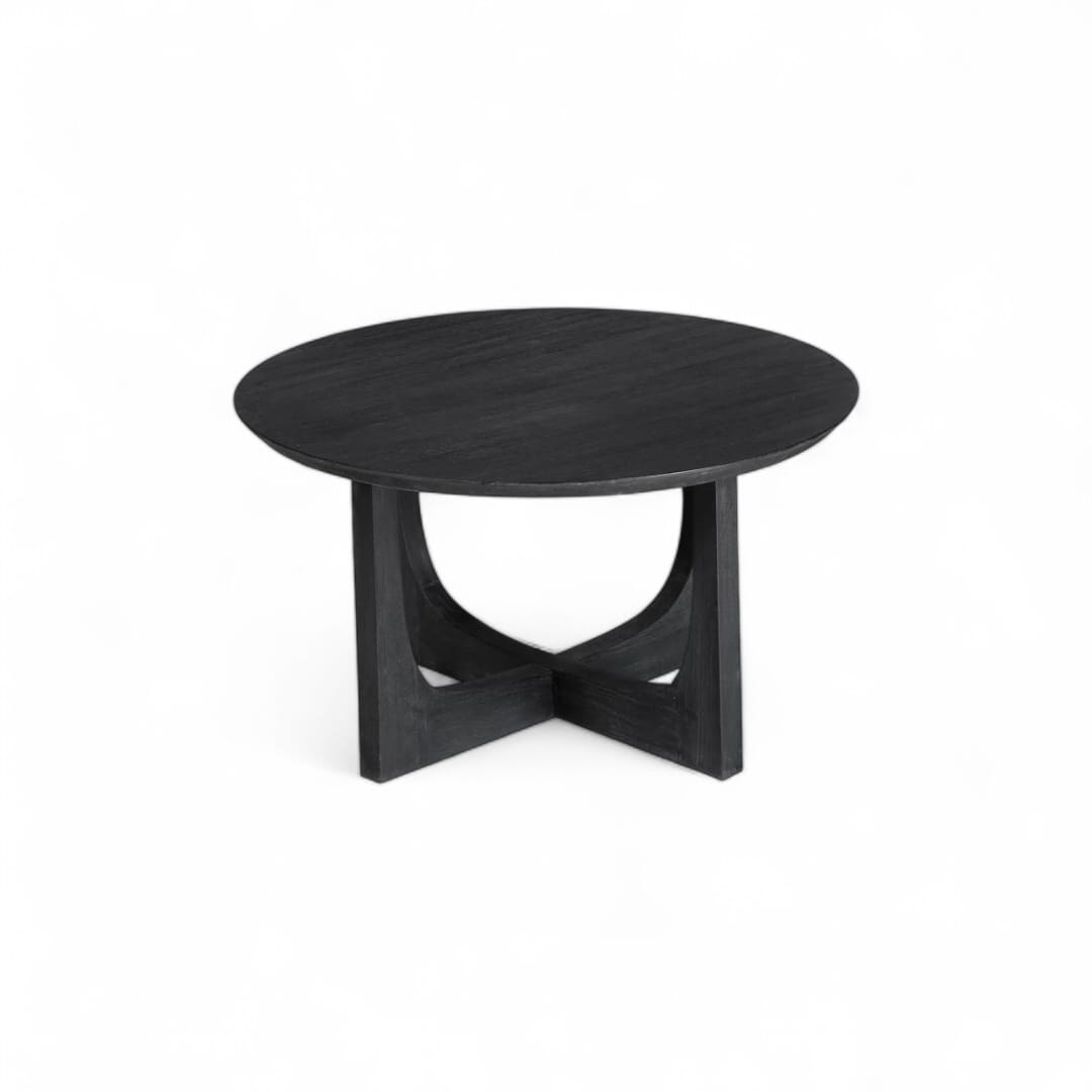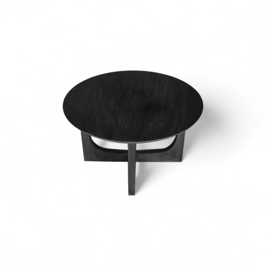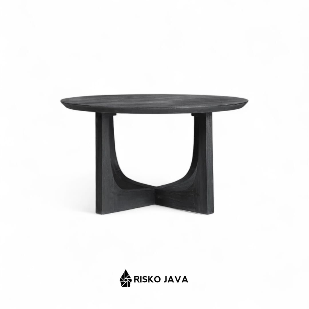 GWION – Meja Ruang Tamu Natural Black / Meja Bulat Kayu Jati / Coffee Table Minimalis