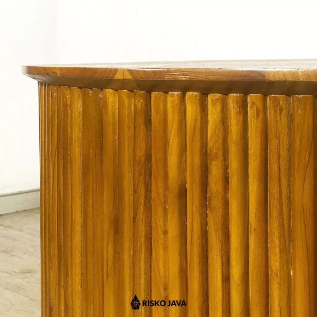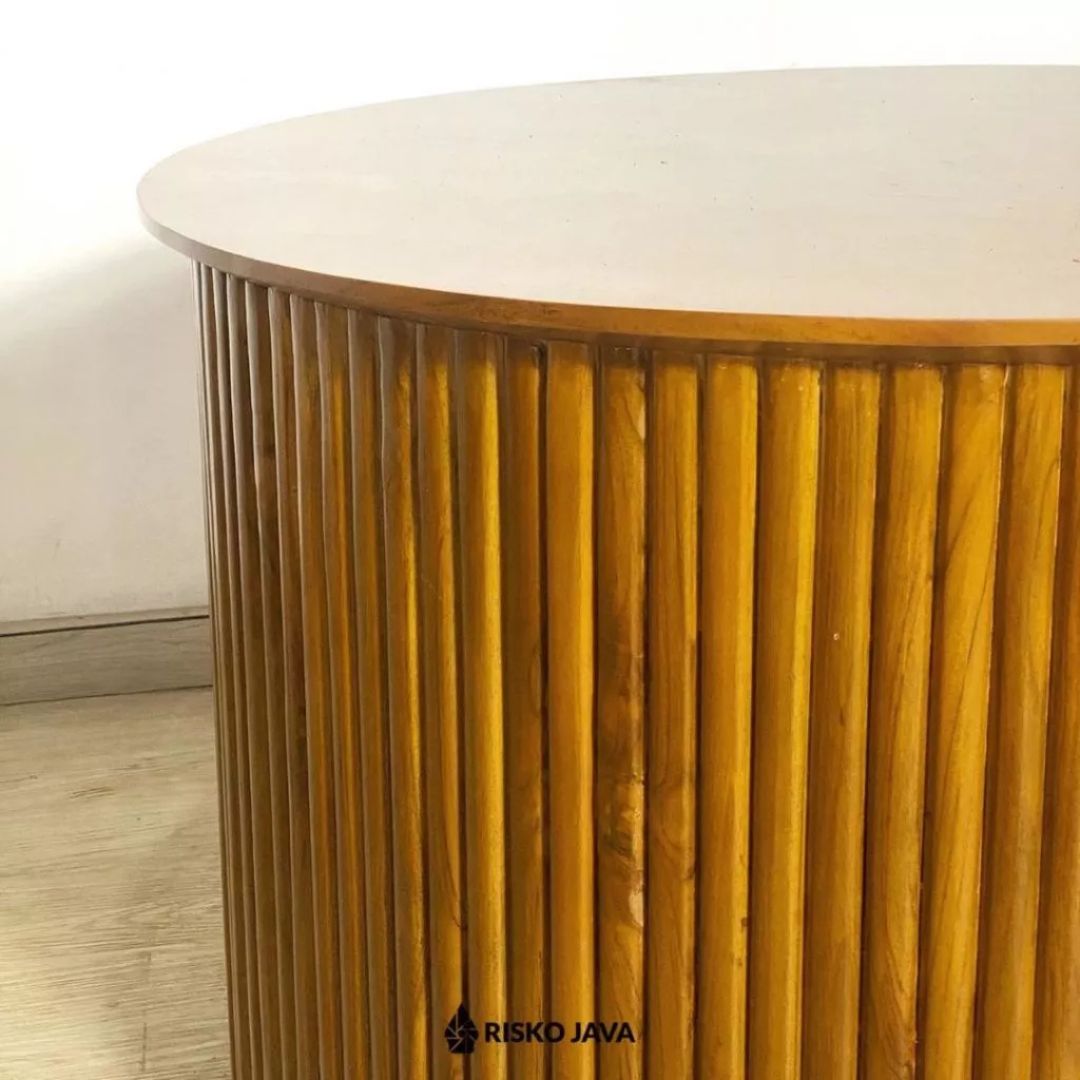 Hadir dengan desain bulat yang menawan, coffee table ini dibuat dari kayu jati solid dengan detail garis salur yang memberikan karakter unik. Perpaduan desain minimalis dan natural menjadikannya pilihan sempurna untuk melengkapi ruang tamu modern Anda. Tampil estetik dan tetap fungsional, meja ini siap menghadirkan kehangatan dalam setiap momen santai!