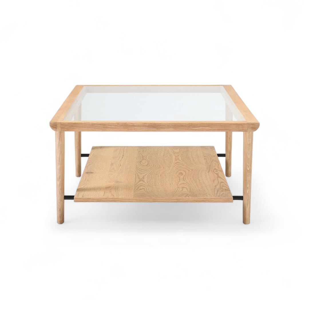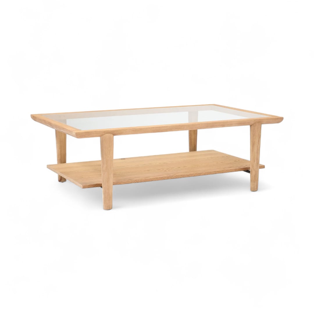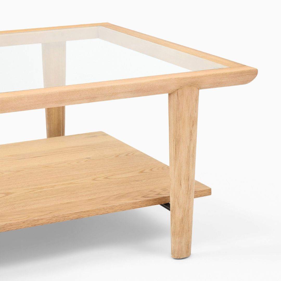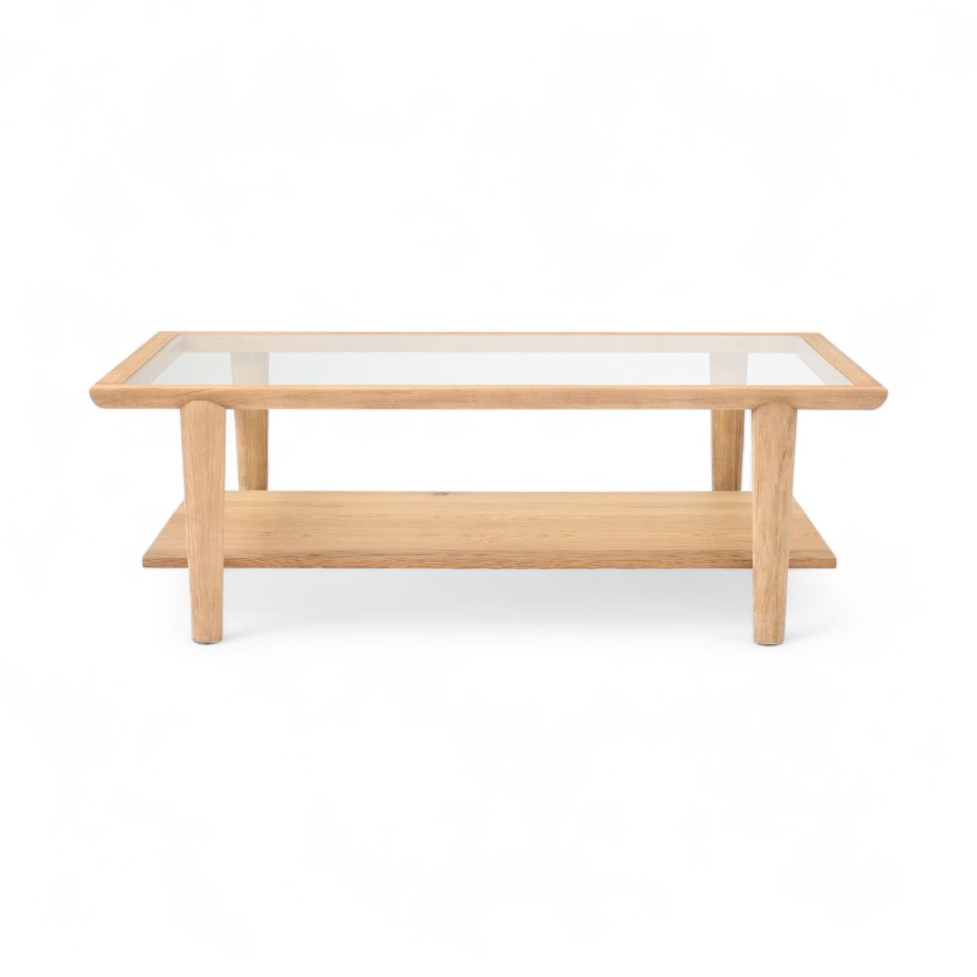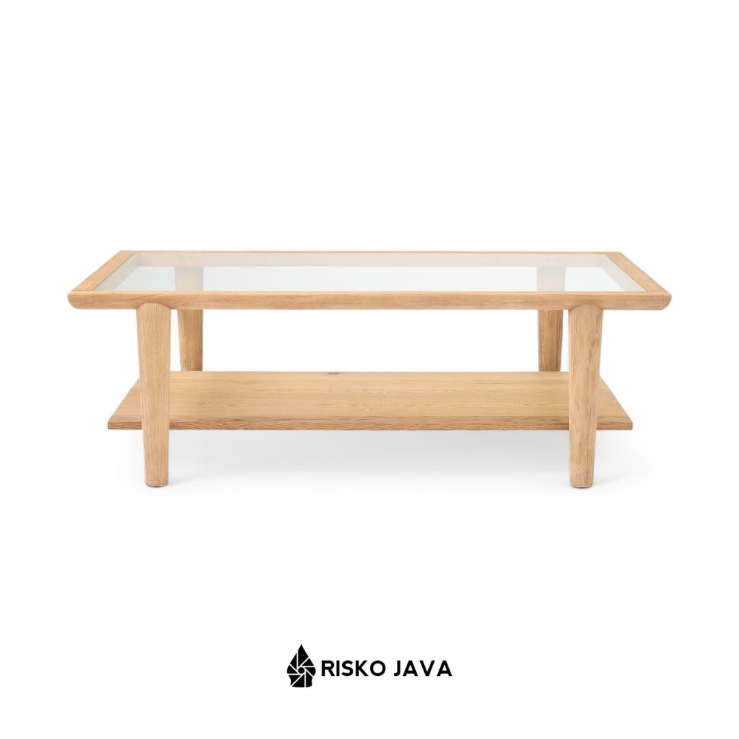 LEANDER Coffee Table Kayu Jati Minimalis dengan Top Kaca