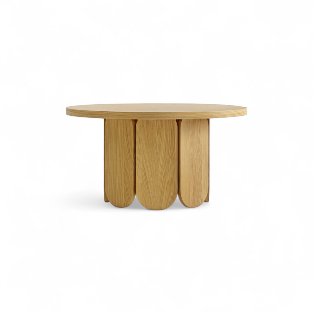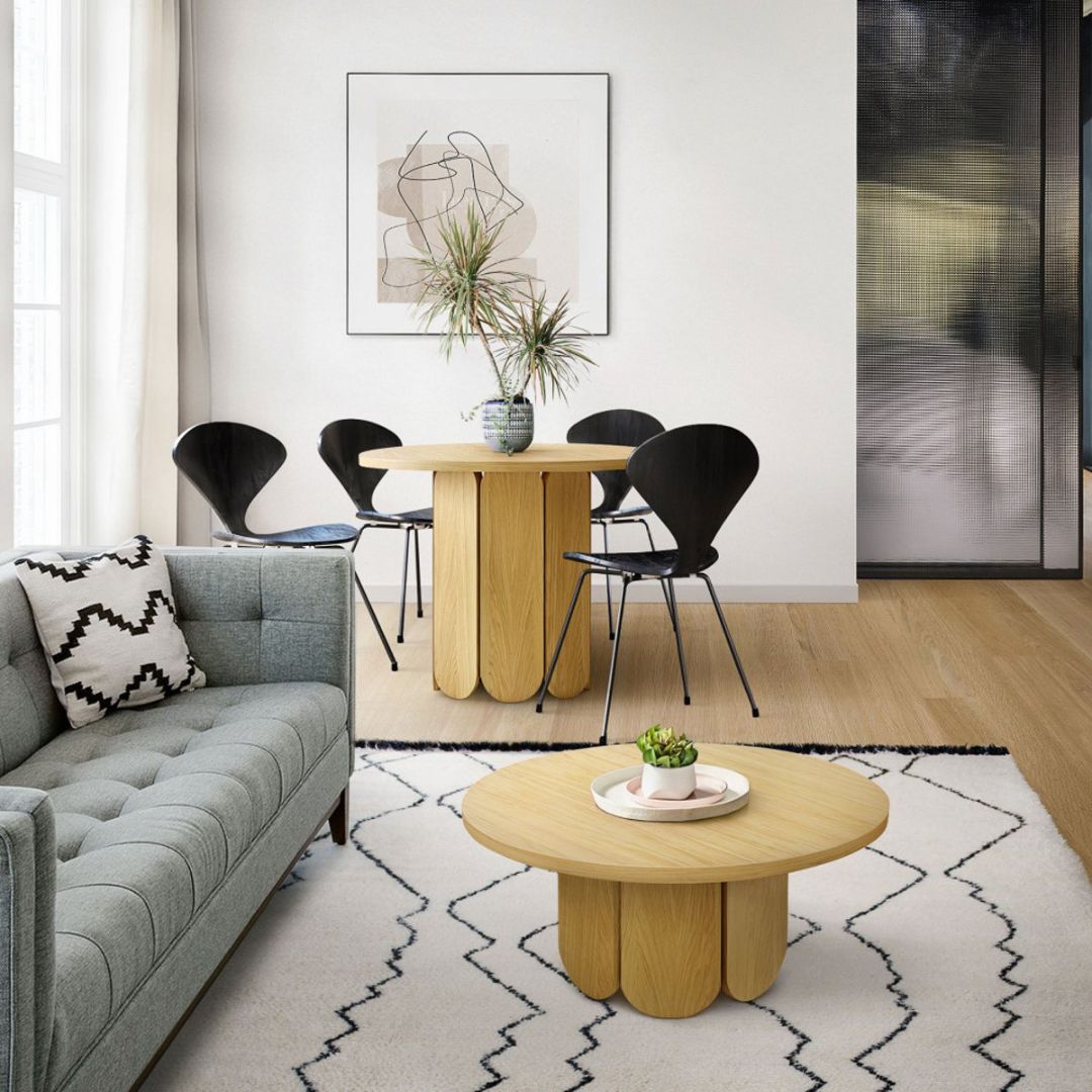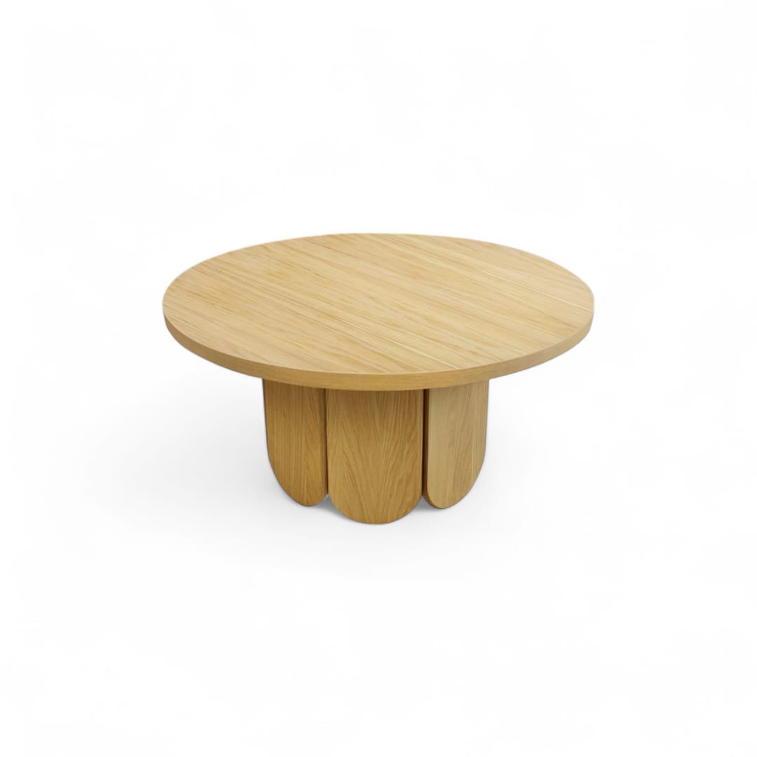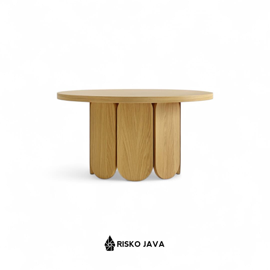 Meja ruang tamu kayu jati minimalis modern ini memiliki bentuk bulat yang elegan, didukung oleh kaki satu tumpuan dengan desain oval memanjang. Kaki yang unik ini tidak hanya memberikan stabilitas, tetapi juga menambah sentuhan artistik pada meja. Material kayu jati berkualitas tinggi memastikan ketahanan dan daya tarik alami, menjadikannya pilihan sempurna untuk melengkapi ruang tamu Anda dengan gaya modern yang fungsional dan berkelas.