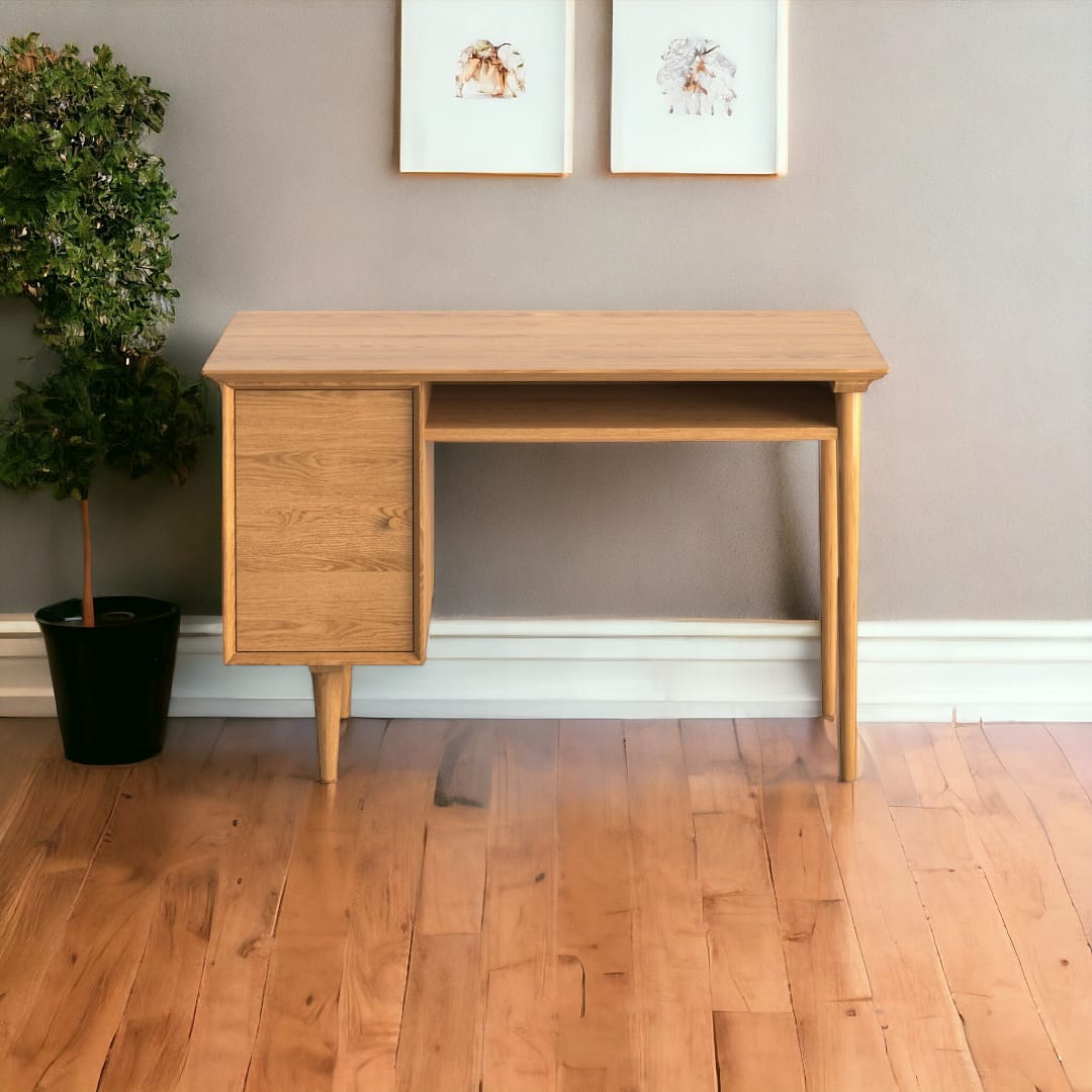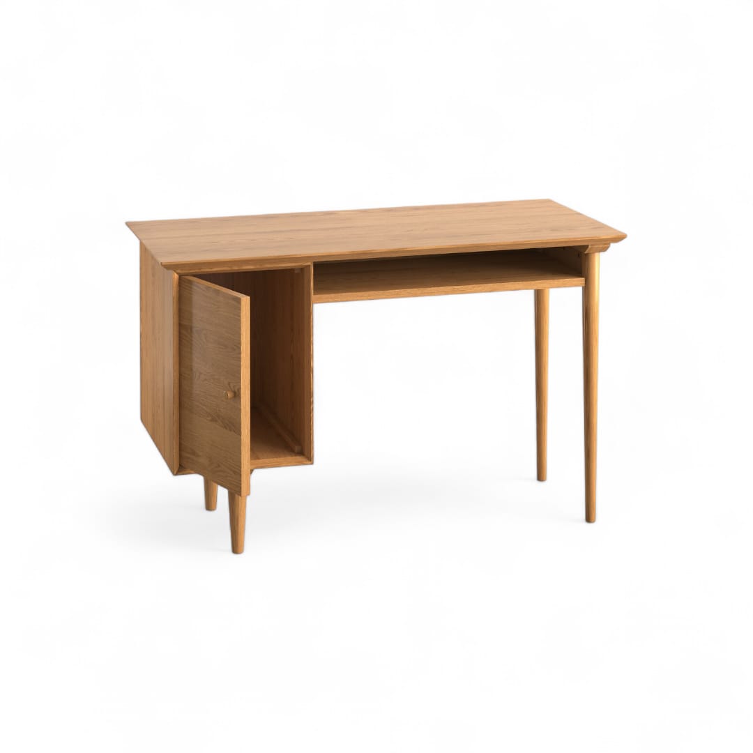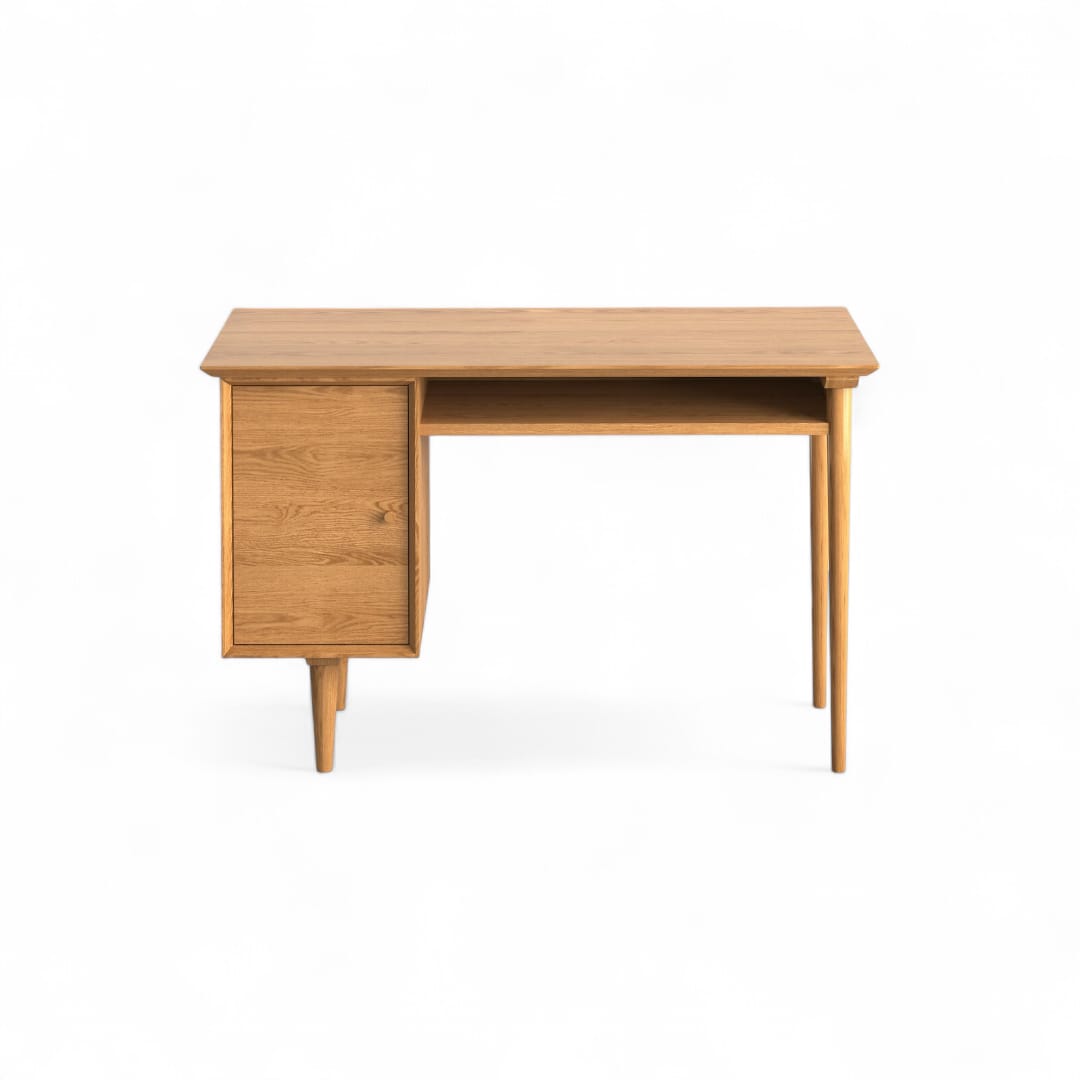Meja AJAYI dilengkapi 1 ruang penyimpanan tertutup di sisi kanan dan 1 laci terbuka di sampingnya. Dengan desain seperti ini, Anda dapat menata dokumen, alat tulis, dan perlengkapan kerja dengan lebih rapi. Selain sebagai meja belajar, meja ini juga cocok digunakan sebagai meja kantor atau meja kerja di rumah 💻