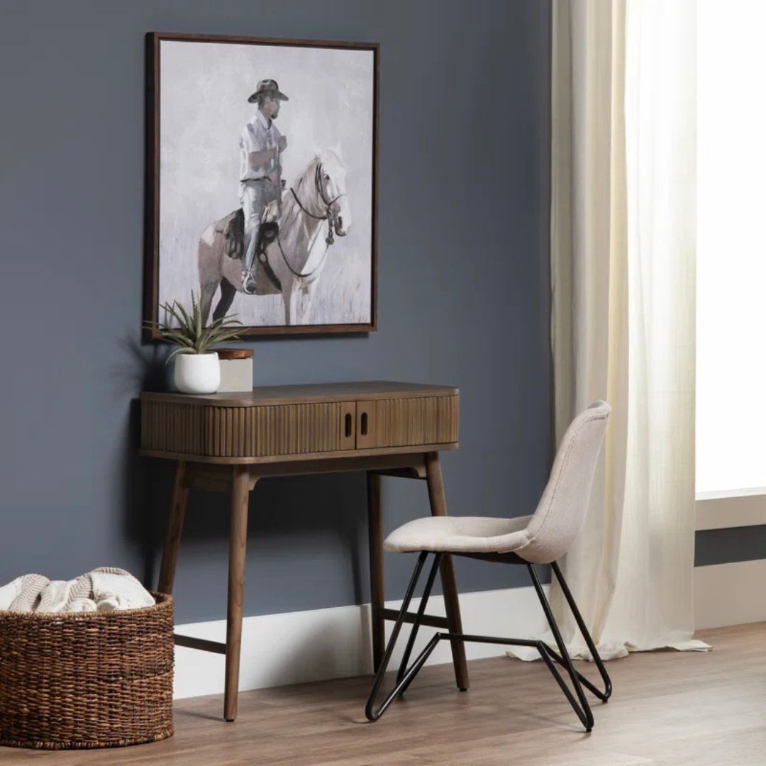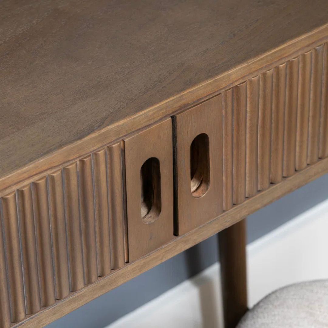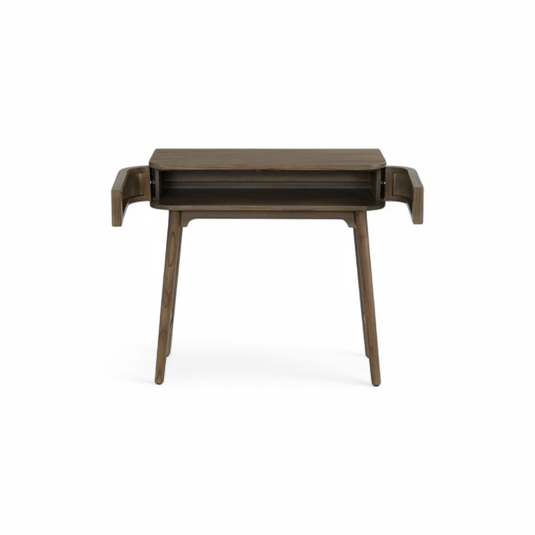 Meja belajar kayu jati dengan desain minimalis retro yang serbaguna, cocok digunakan sebagai meja kerja atau meja kantor. Dilengkapi ruang penyimpanan utama dengan 2 pintu salur yang dapat dibuka dan ditutup, memberikan kemudahan dalam menyimpan berbagai keperluan dengan tampilan yang tetap rapi. Sentuhan garis salur pada pintu menambah kesan klasik yang estetik, menjadikan meja ini pilihan sempurna untuk ruang kerja yang nyaman dan stylish!