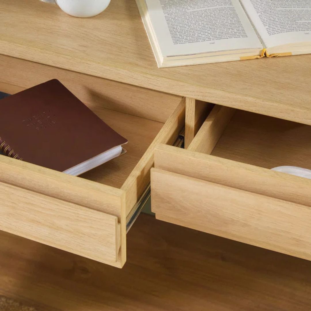 Meja belajar kayu jati dengan desain minimalis retro yang serbaguna, cocok digunakan sebagai meja kerja atau meja kantor. Dilengkapi 2 laci penyimpanan utama di bagian kanan dan kiri, memberikan ruang yang cukup untuk menyimpan berbagai keperluan agar meja tetap rapi. Dengan sentuhan kayu jati alami, meja ini menghadirkan nuansa klasik yang elegan dan nyaman untuk produktivitas maksimal!