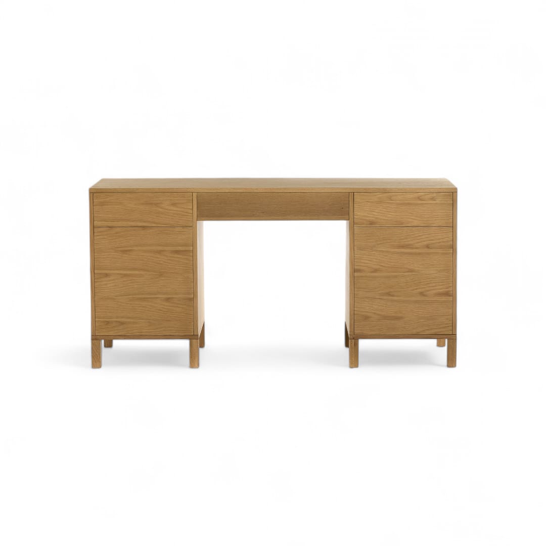 Dilengkapi kaki dua tumpuan yang solid, meja siap menopang aktivitas harian Anda, mulai dari bekerja, belajar, hingga menata perangkat kerja Anda.