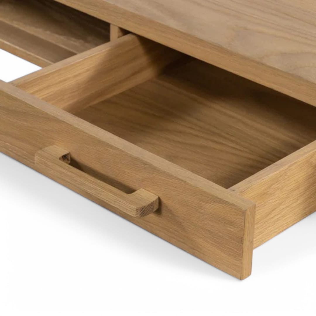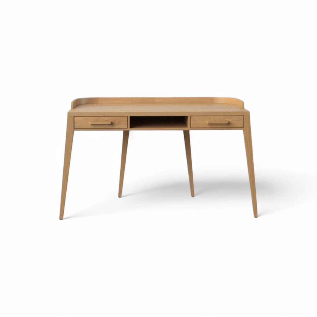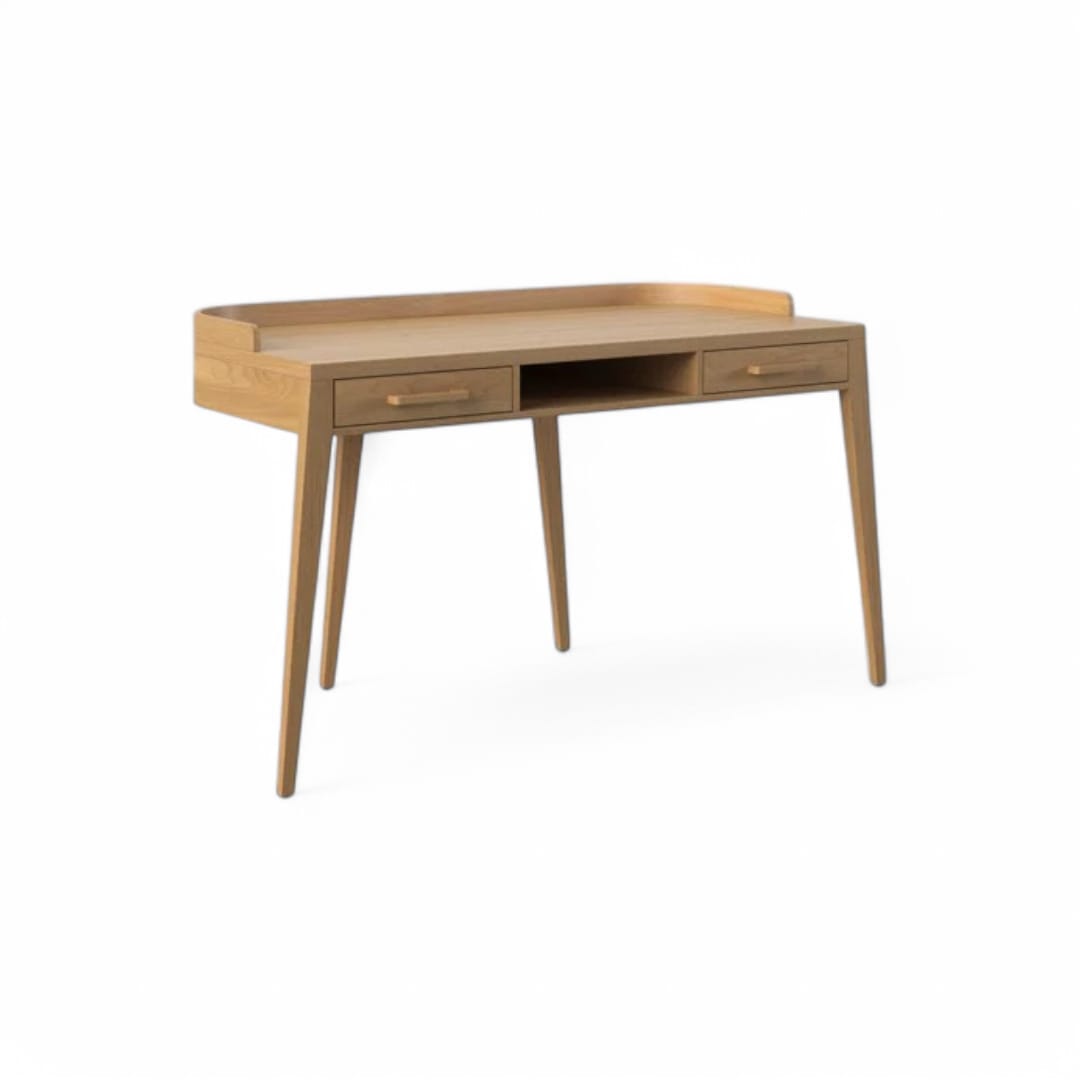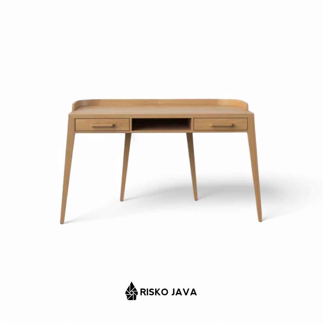 Meja belajar kayu jati dengan desain minimalis retro yang serbaguna, cocok digunakan sebagai meja kerja atau meja kantor. Dilengkapi 2 laci penyimpanan di bagian kanan dan kiri, serta ruang penyimpanan terbuka di tengah, memberikan kemudahan dalam menyimpan berbagai keperluan dengan tampilan yang tetap rapi. Material kayu jati alami menghadirkan kesan klasik yang elegan, menjadikan meja ini pilihan sempurna untuk ruang kerja yang nyaman dan stylish!