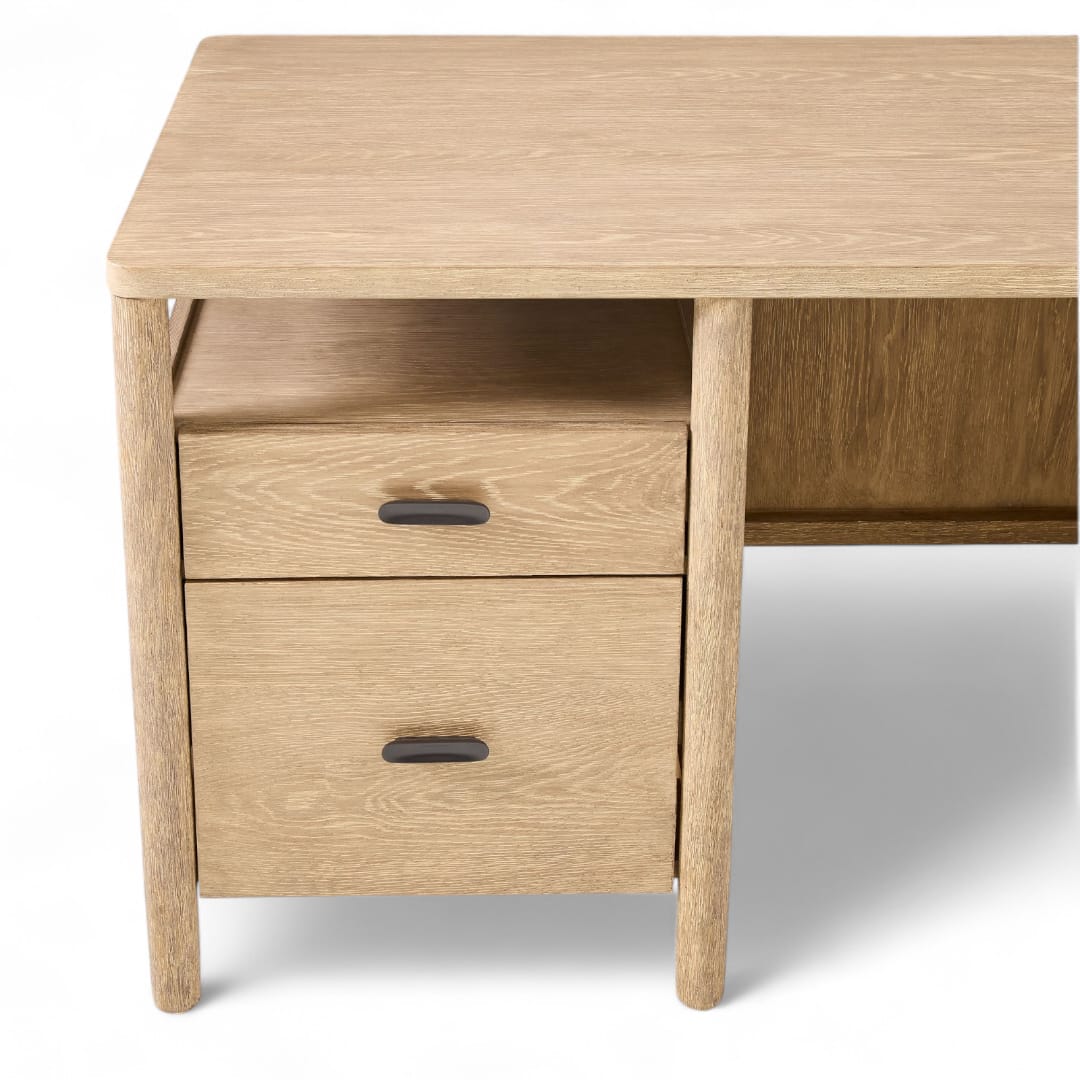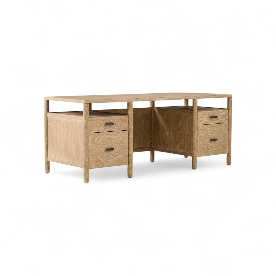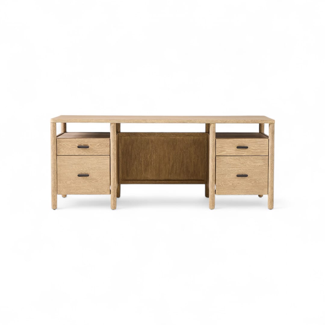 Selain itu, meja ini dilengkapi dua laci penyimpanan di bagian kanan dan kiri serta dua ruang terbuka di atasnya, sehingga Anda dapat menata dokumen, alat tulis, hingga perangkat kerja dengan lebih rapi dan terorganisir 📚🖋️