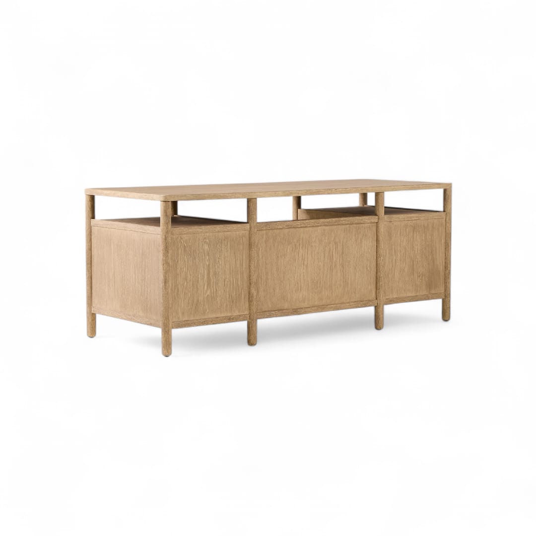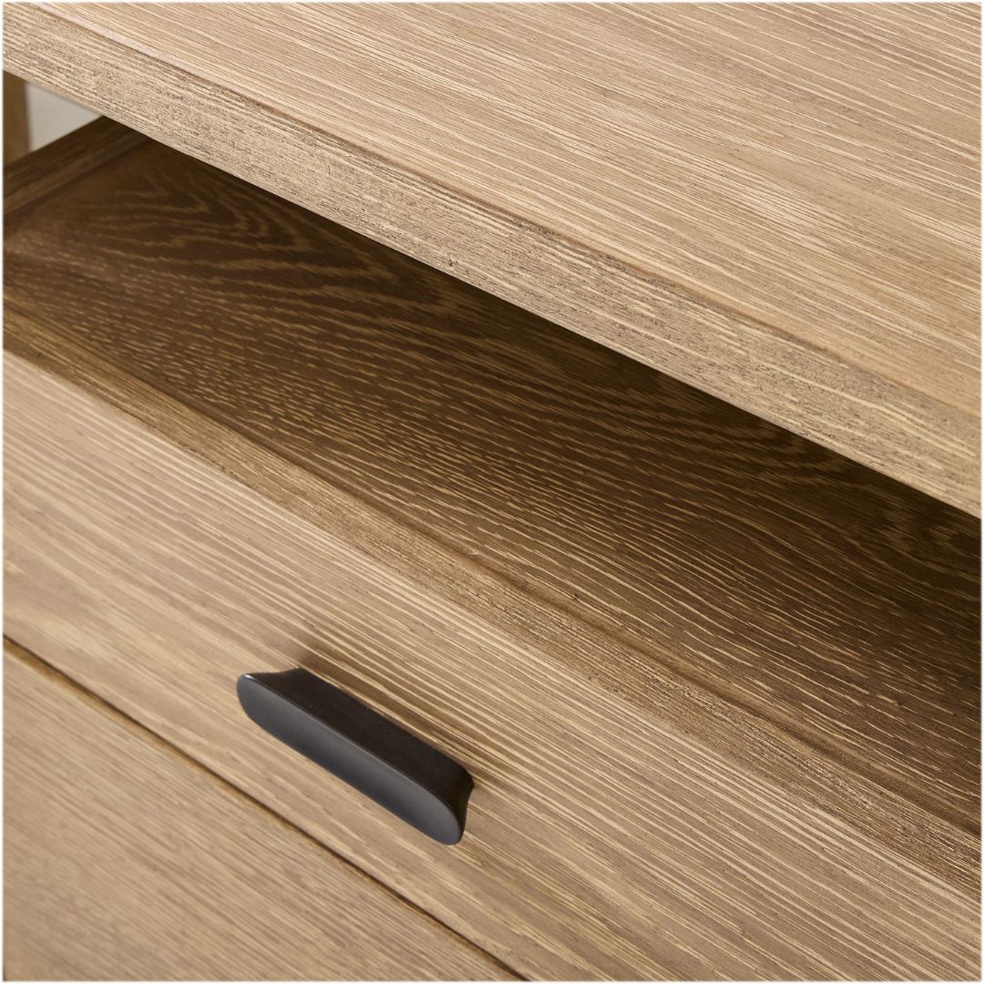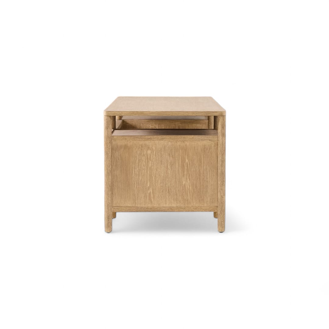 Selain itu, meja ini dilengkapi dua laci penyimpanan di bagian kanan dan kiri serta dua ruang terbuka di atasnya, sehingga Anda dapat menata dokumen, alat tulis, hingga perangkat kerja dengan lebih rapi dan terorganisir 📚🖋️