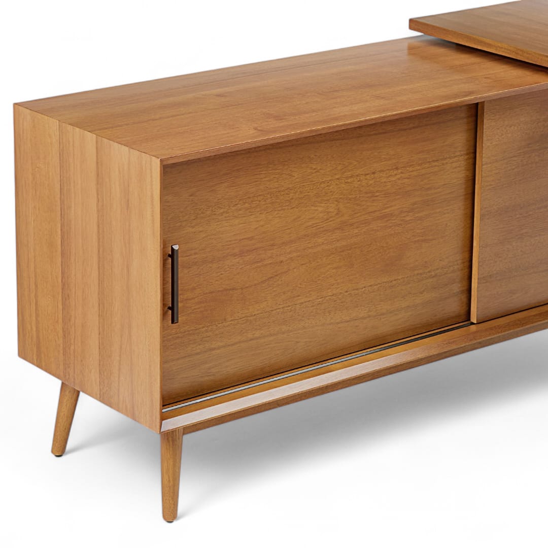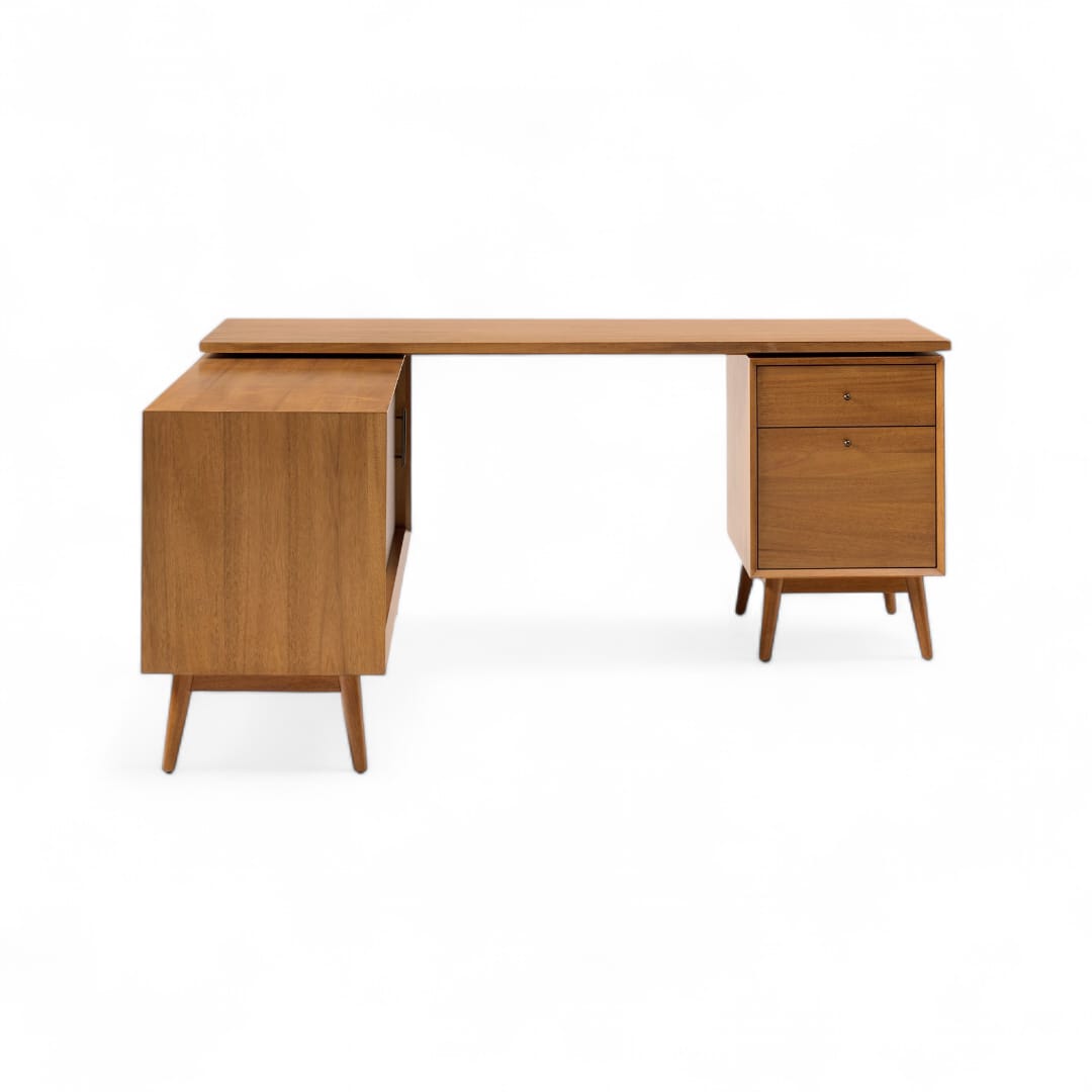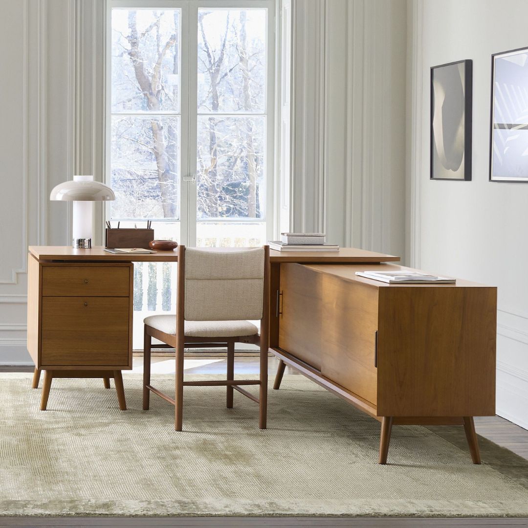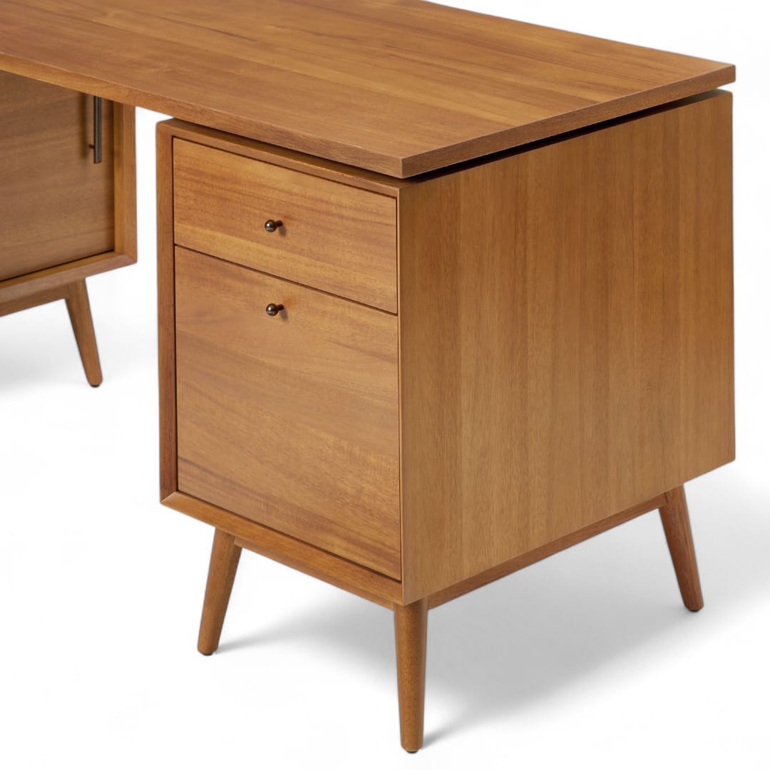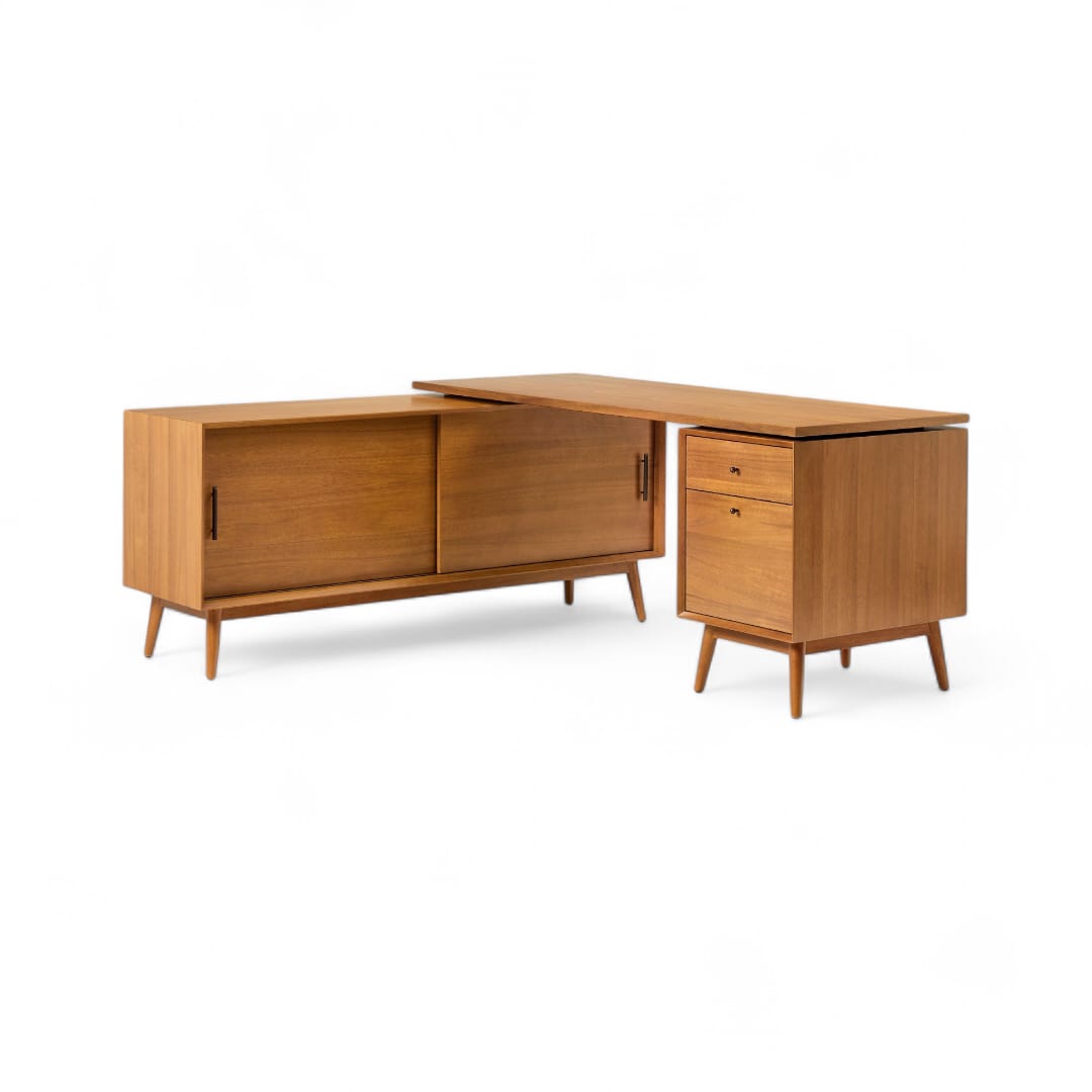 Selain tampil elegan, meja ini juga dilengkapi dengan cabinet tambahan di samping yang memiliki pintu sliding untuk memudahkan akses penyimpanan. Kemudian, di bagian bawah meja terdapat dua laci praktis yang dapat digunakan untuk menyimpan dokumen, alat tulis, hingga perlengkapan kerja penting. Dengan finishing custom seperti Black, Walnut, atau Bleach, Anda bisa menyesuaikan tampilan meja sesuai gaya ruangan Anda. 🌿