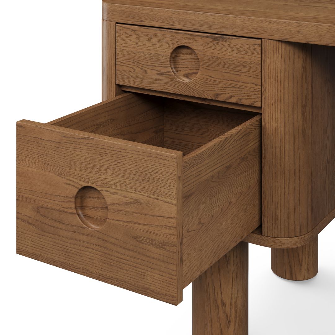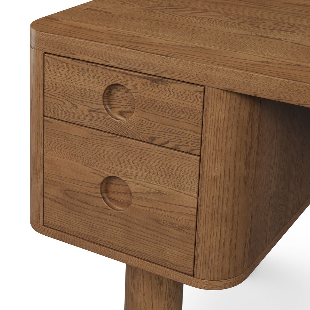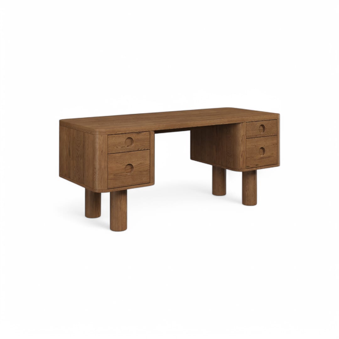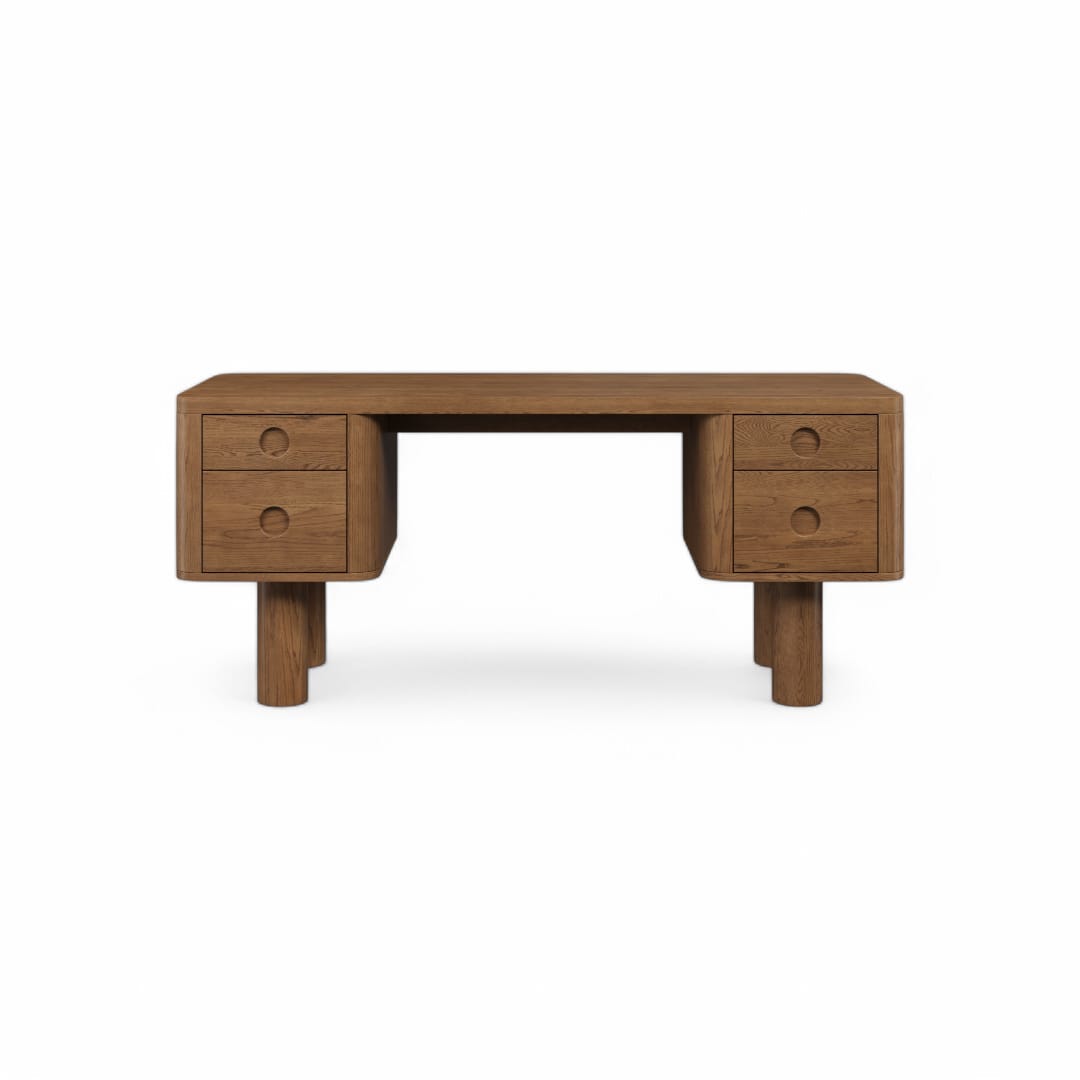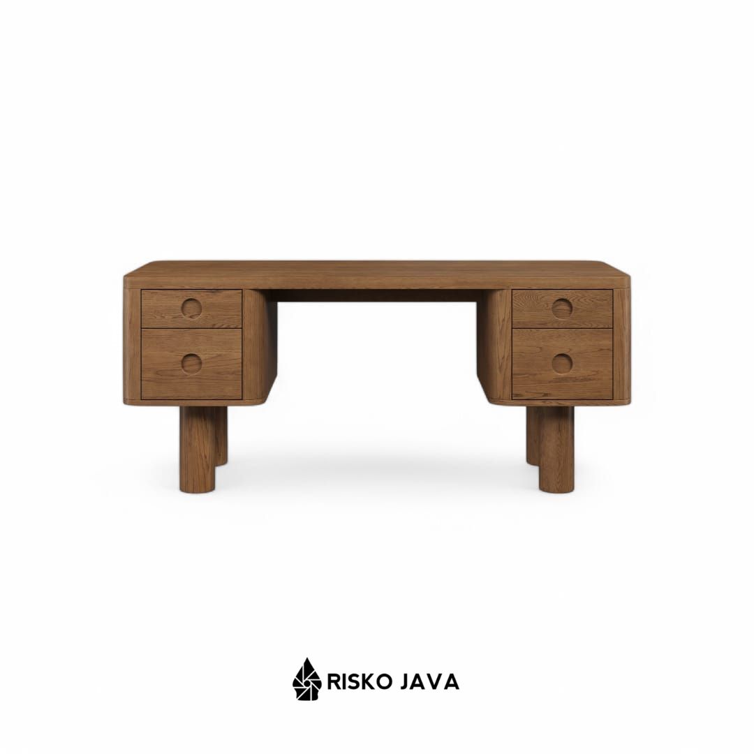 Meja belajar kayu jati dengan desain minimalis retro yang timeless, cocok digunakan sebagai meja kerja atau meja kantor. Dilengkapi 2 laci utama di bagian kanan dan kiri, memberikan ruang penyimpanan yang praktis untuk menjaga meja tetap rapi. Tampilan klasik dengan sentuhan alami kayu jati menjadikannya pilihan sempurna untuk ruang kerja yang nyaman dan estetik!