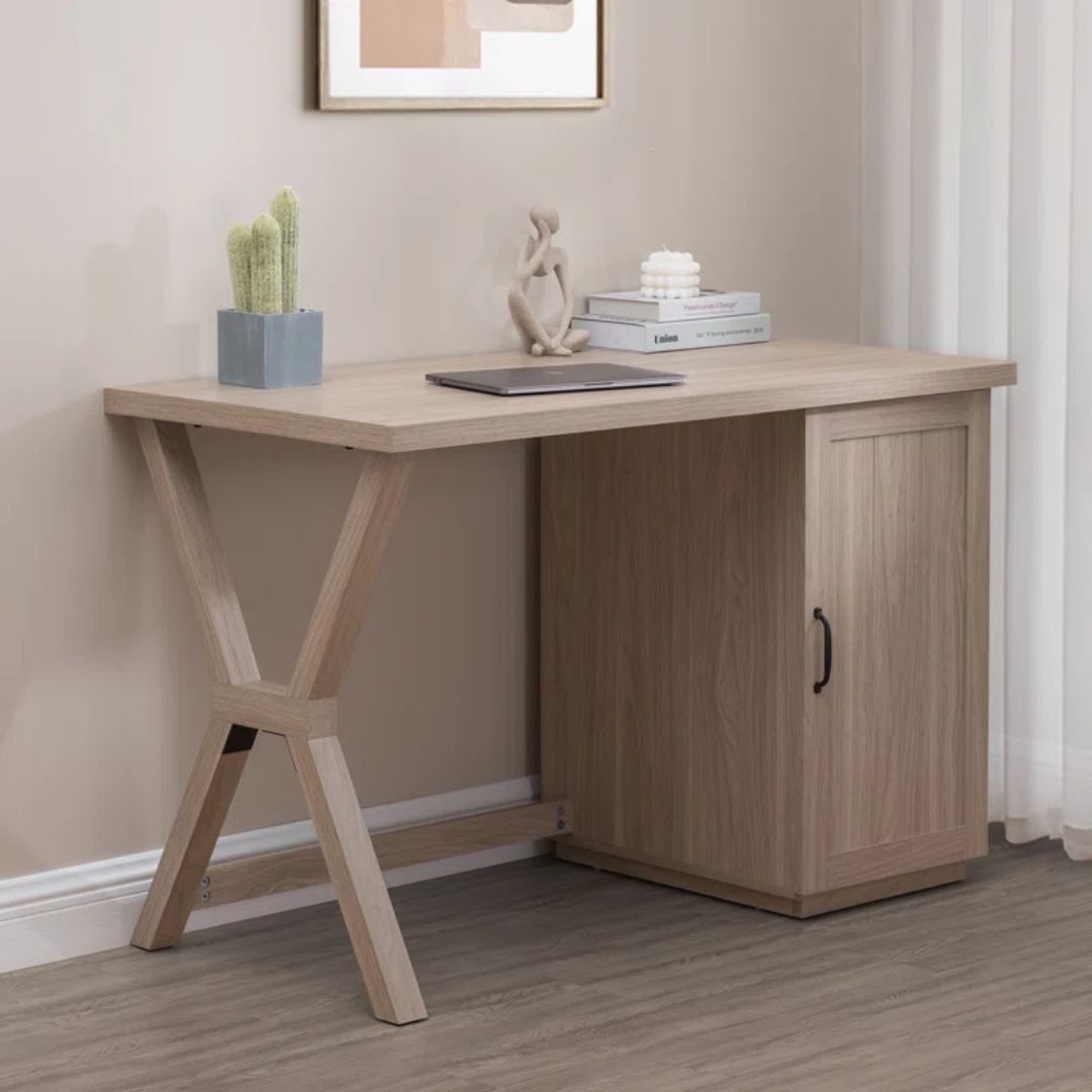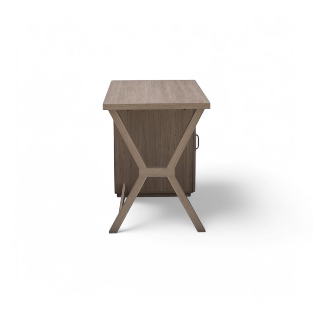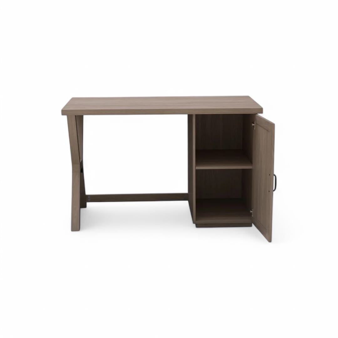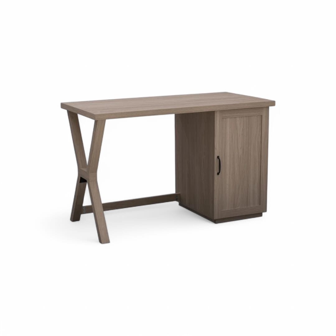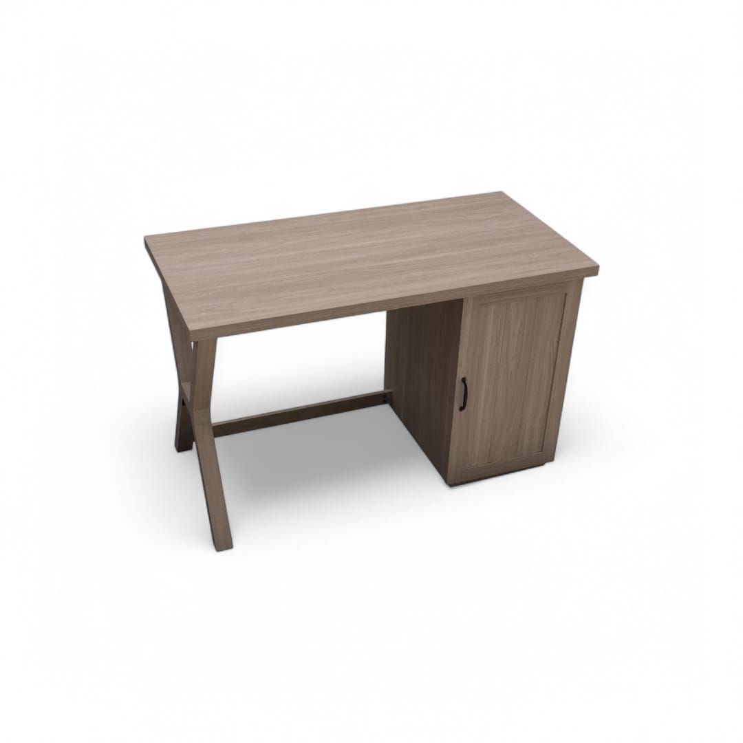 Hadir dengan desain minimalis modern, meja belajar ini menawarkan tampilan simpel namun tetap fungsional. Ruang penyimpanan utama dengan pintu di bagian kaki kanan memberikan tempat ideal untuk menyimpan berbagai keperluan kerja atau belajar. Terbuat dari kayu jati solid, meja ini kokoh dan tahan lama, cocok digunakan sebagai meja kantor, meja belajar, atau workstation yang stylish dan nyaman.