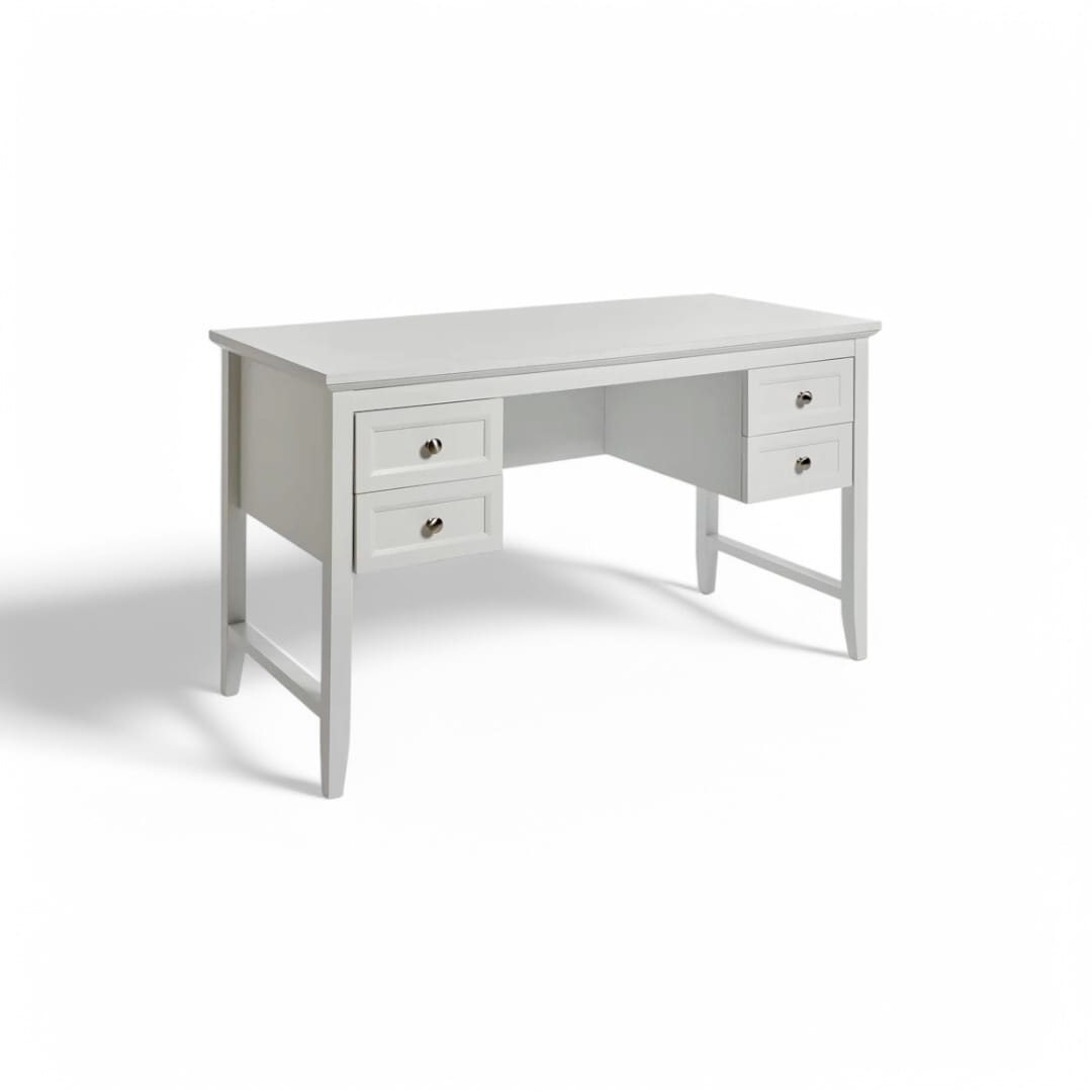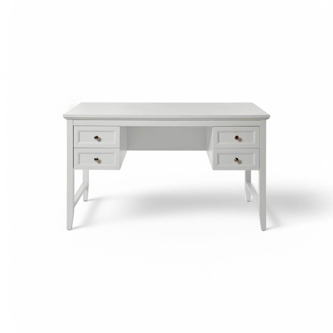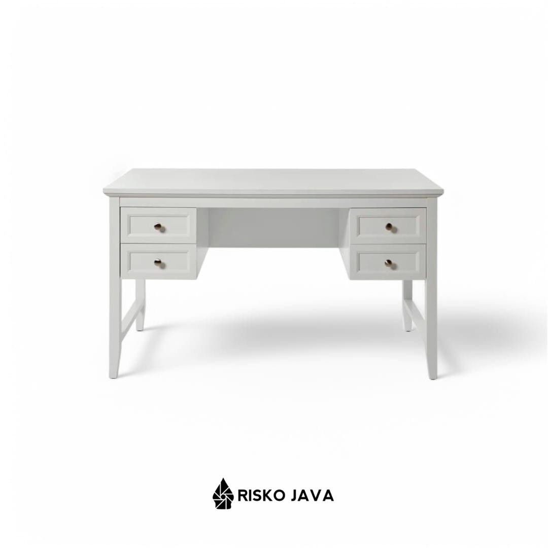Meja belajar ini hadir dengan desain minimalis modern yang fungsional dan estetik. Terbuat dari kayu jati berkualitas, dilengkapi 2 laci penyimpanan utama di bagian kanan dan kiri, memberikan ruang ekstra untuk menyimpan perlengkapan kerja agar tetap rapi. Finishing duco putih memberikan tampilan bersih dan elegan, cocok untuk menciptakan suasana kerja yang nyaman dan stylish. Ideal sebagai meja belajar, meja kerja, atau meja kantor yang mempercantik ruangan!