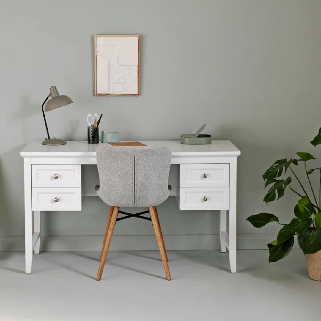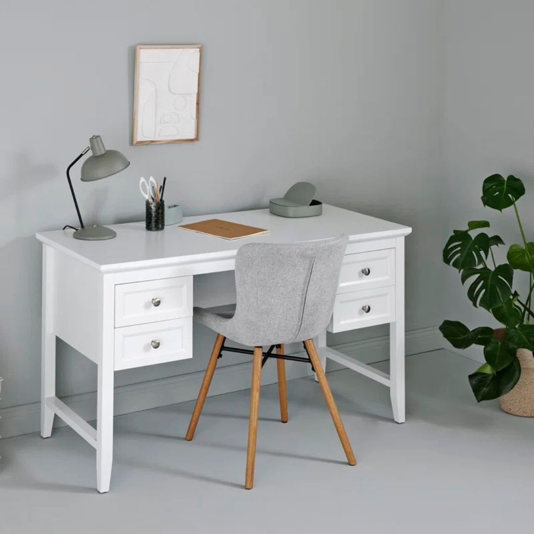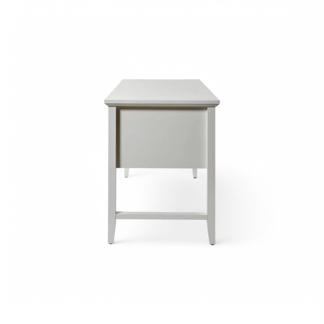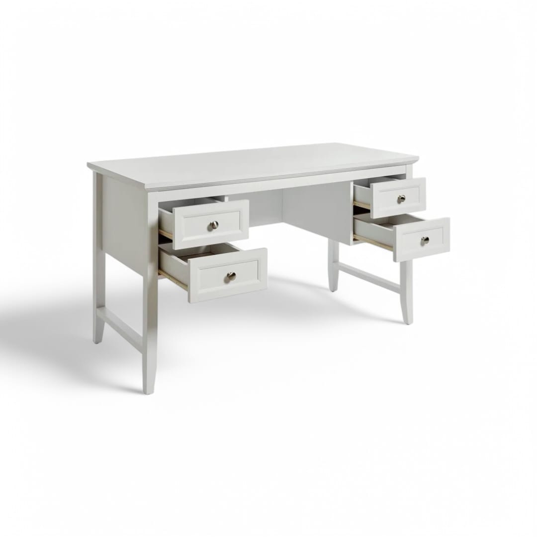 Meja belajar ini hadir dengan desain minimalis modern yang fungsional dan estetik. Terbuat dari kayu jati berkualitas, dilengkapi 2 laci penyimpanan utama di bagian kanan dan kiri, memberikan ruang ekstra untuk menyimpan perlengkapan kerja agar tetap rapi. Finishing duco putih memberikan tampilan bersih dan elegan, cocok untuk menciptakan suasana kerja yang nyaman dan stylish. Ideal sebagai meja belajar, meja kerja, atau meja kantor yang mempercantik ruangan!