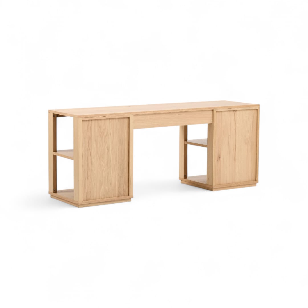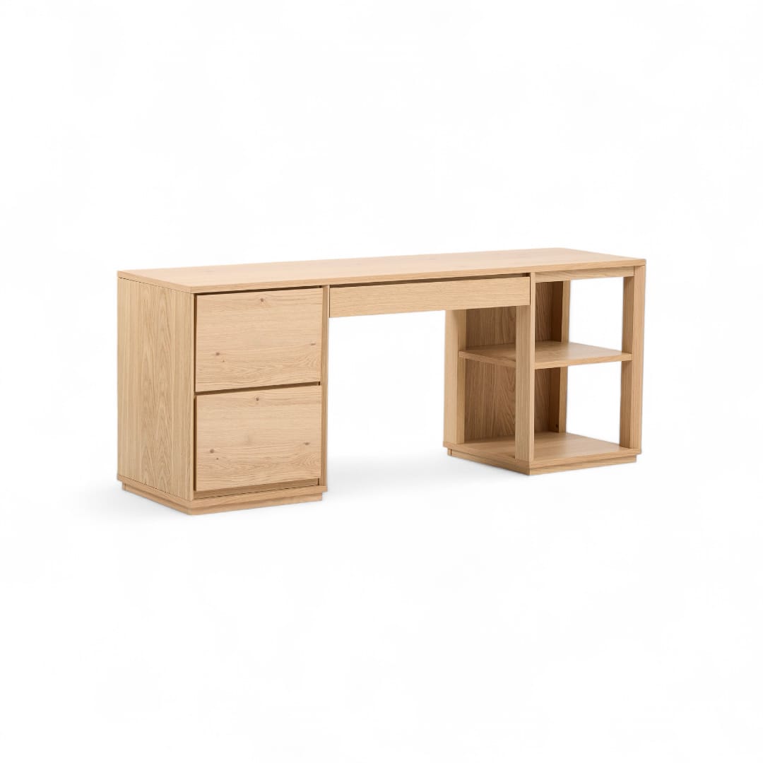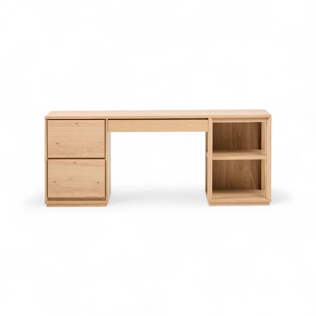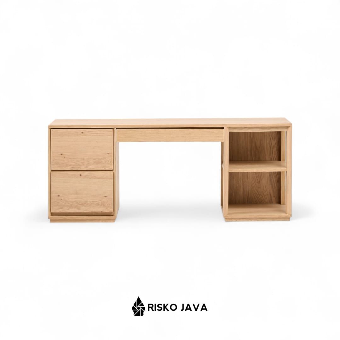 Selain tampil menarik, meja ini juga sangat fungsional. Dilengkapi dua laci di kanan, satu laci tengah, dan dua ruang penyimpanan terbuka di kiri, Anda dapat menyimpan perlengkapan kerja dengan rapi dan mudah dijangkau. Oleh karena itu, meja ini cocok untuk ruang kerja modern, kantor, maupun ruang belajar di rumah. Dengan meja ini, setiap aktivitas terasa lebih produktif dan menyenangkan ✨
