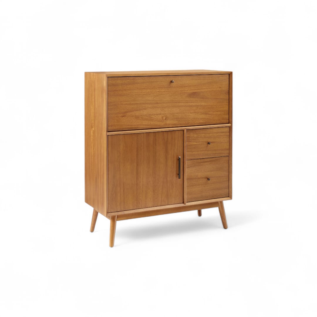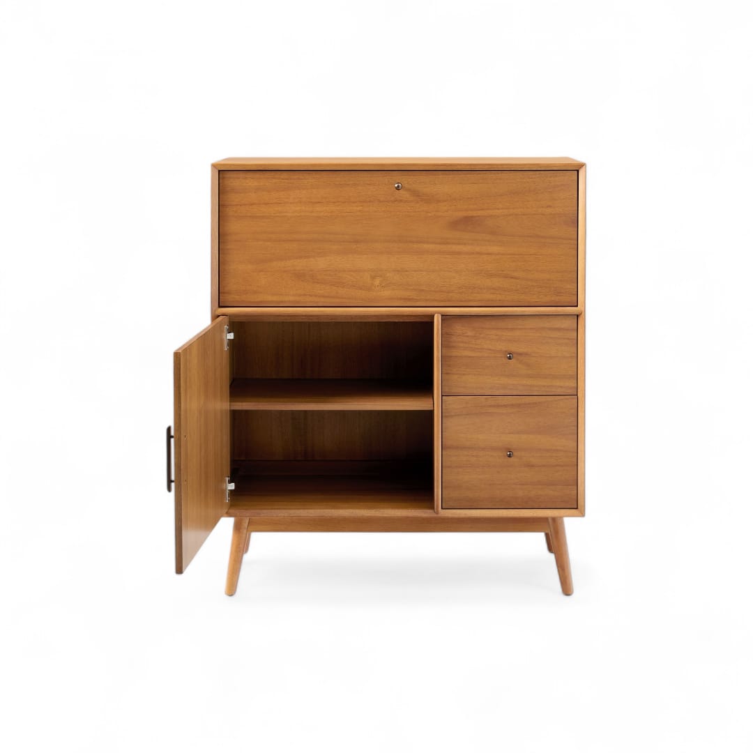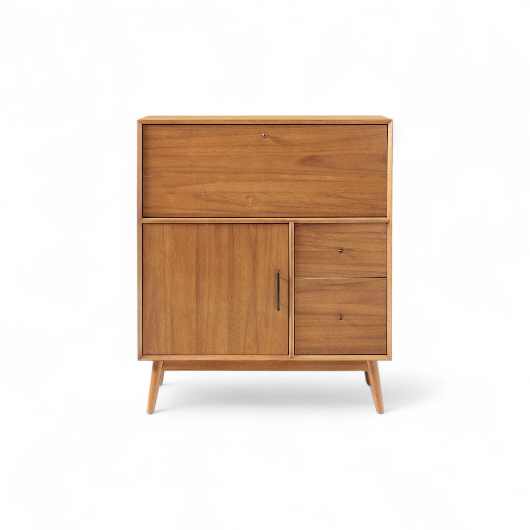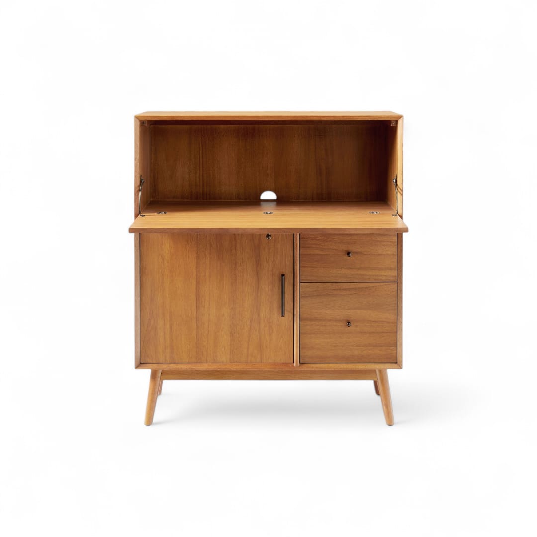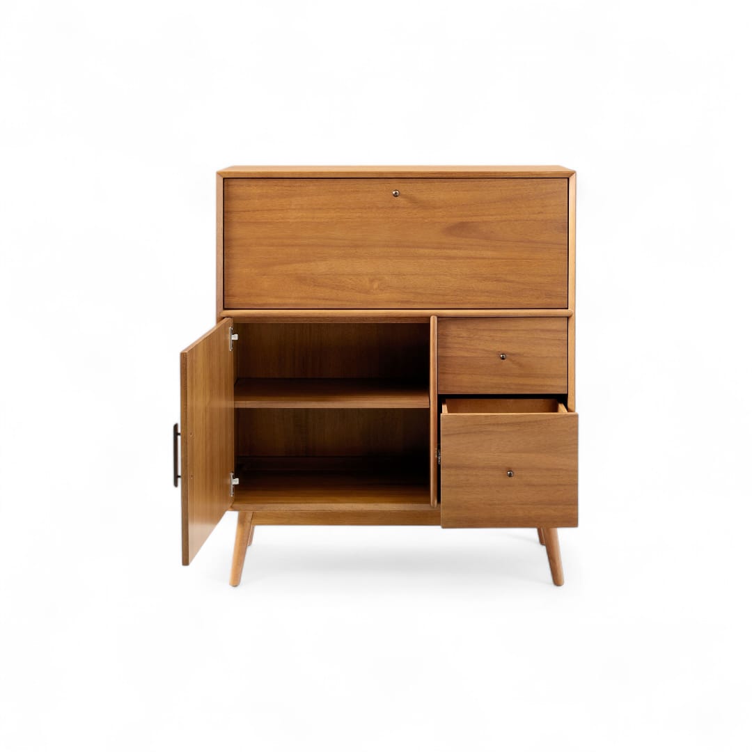 Meja ini dirancang dengan top meja yang bisa dibuka dan ditutup, sehingga Anda dapat menyimpan berbagai perlengkapan kerja di dalamnya dengan rapi. Selain itu, terdapat ruang penyimpanan berpenutup pintu di bagian samping untuk dokumen atau barang penting lainnya.