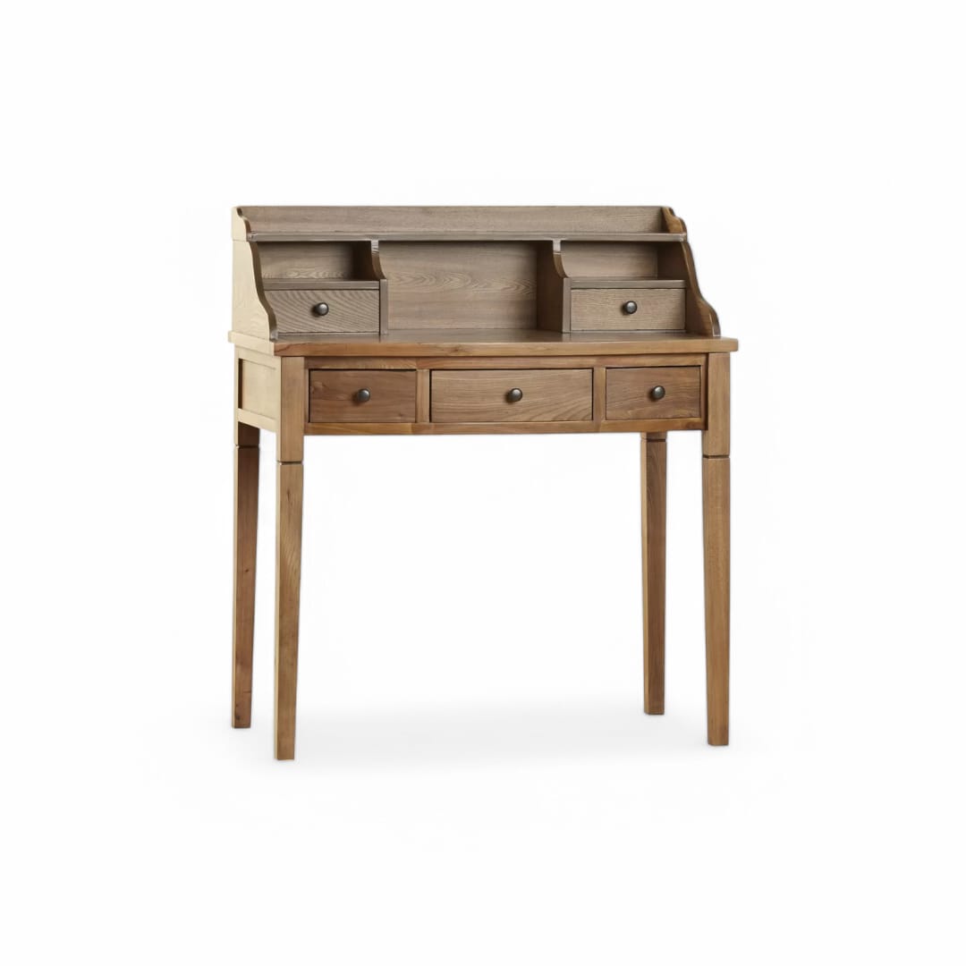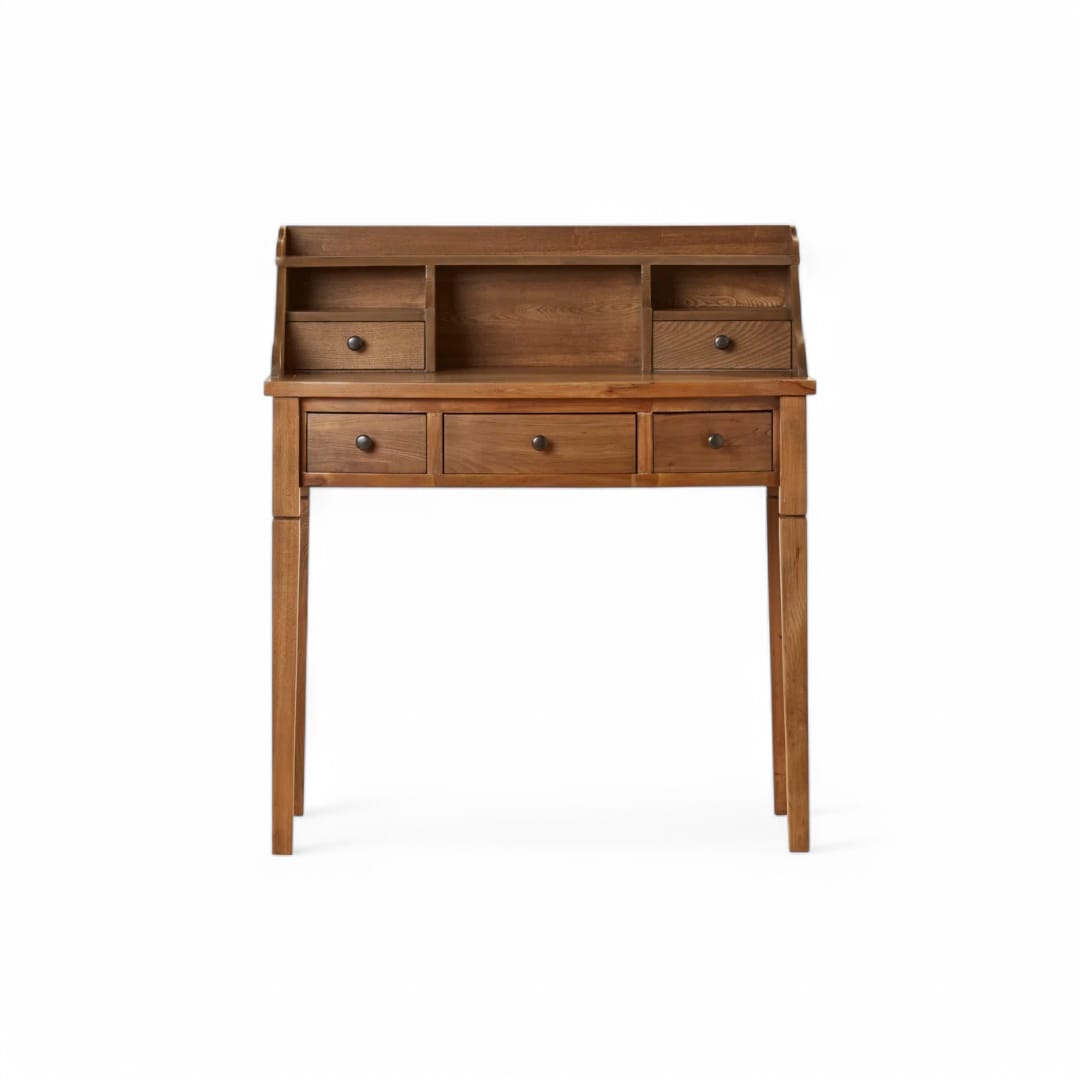 Meja ini dilengkapi 3 laci utama, sehingga Anda dapat menyimpan perlengkapan belajar maupun kerja dengan rapi. Kemudian, terdapat rak tambahan di bagian atas yang memuat 2 laci kecil dan 2 ruang terbuka. Kombinasi ini memberikan solusi penyimpanan yang jauh lebih praktis 📚.