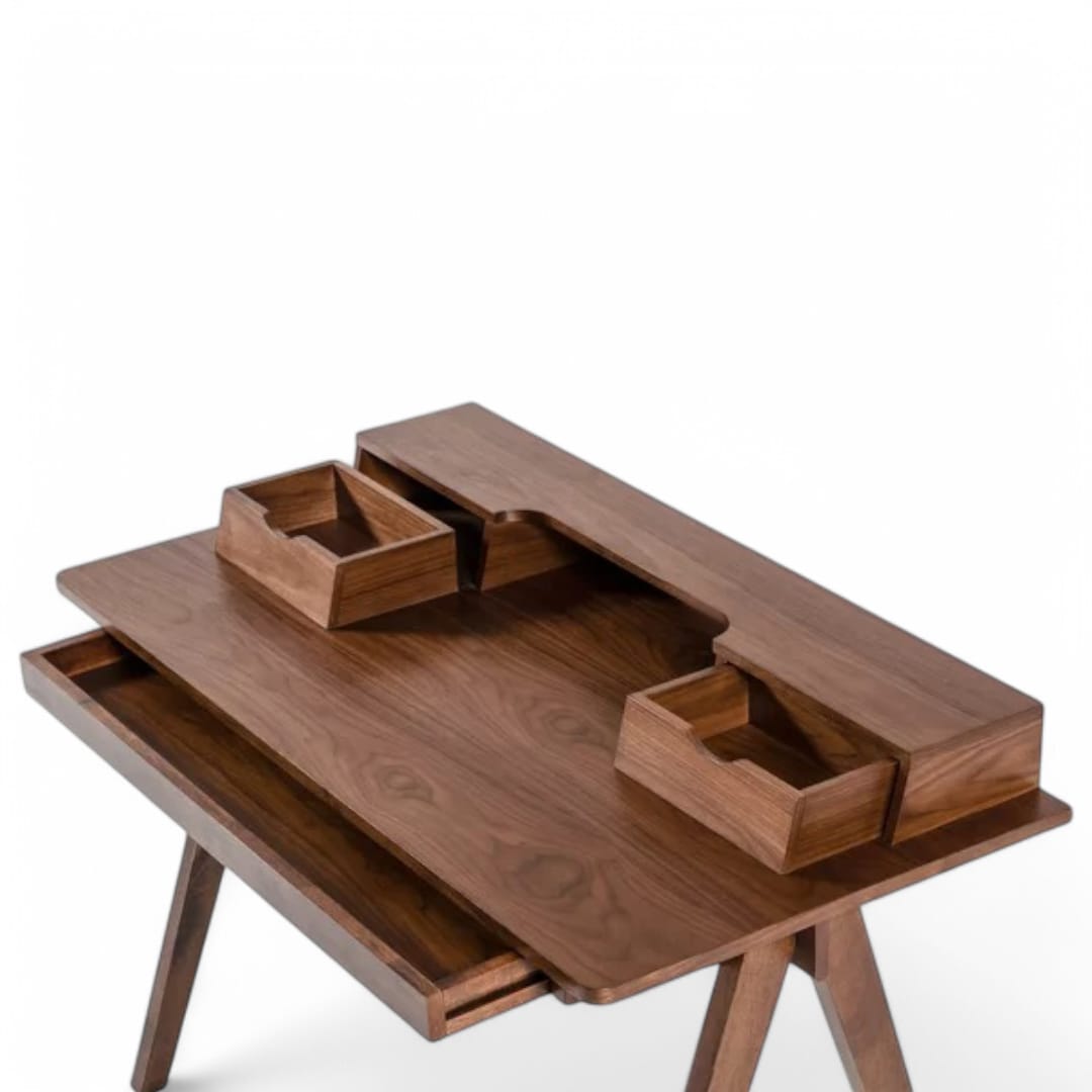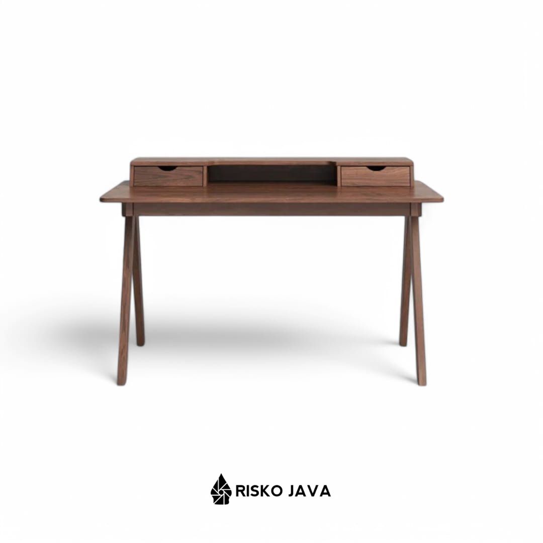 Meja belajar kayu jati dengan desain minimalis retro yang serbaguna, cocok untuk meja kerja atau meja kantor. Dilengkapi 2 laci penyimpanan di bagian kanan dan kiri pada top meja, serta laci penyimpanan utama di tengah, memberikan ruang yang luas untuk menyimpan berbagai keperluan agar meja tetap rapi. Sentuhan kayu jati alami menambah kesan klasik dan elegan, menjadikan meja ini pilihan sempurna untuk ruang kerja yang nyaman dan bergaya!