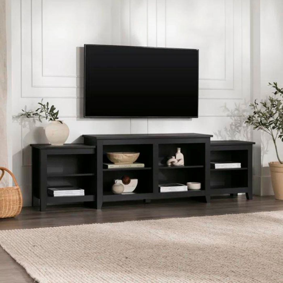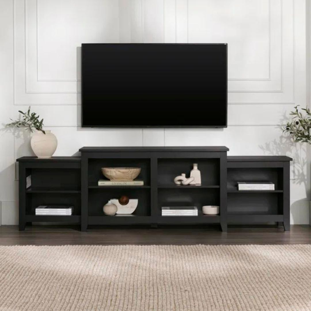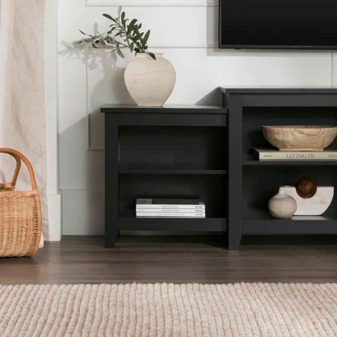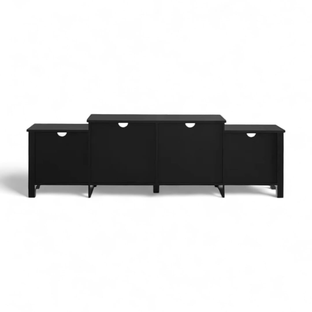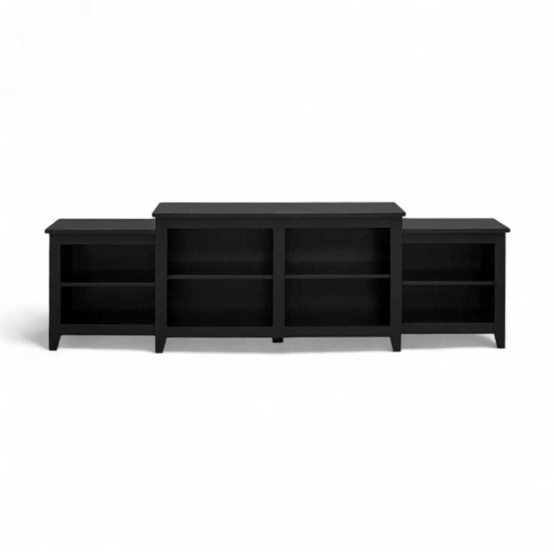 Ciptakan tampilan elegan dengan meja TV kayu jati minimalis modern ini. Didesain dengan dua ruang penyimpanan terbuka di bagian kanan dan kiri serta empat ruang penyimpanan terbuka di bagian tengah utama, meja ini menawarkan solusi praktis untuk perangkat dan aksesori Anda. Finishing natural black menambahkan sentuhan kontemporer yang menonjolkan keindahan alami kayu jati. Ideal untuk ruang tamu yang stylish dan terorganisir dengan sempurna.