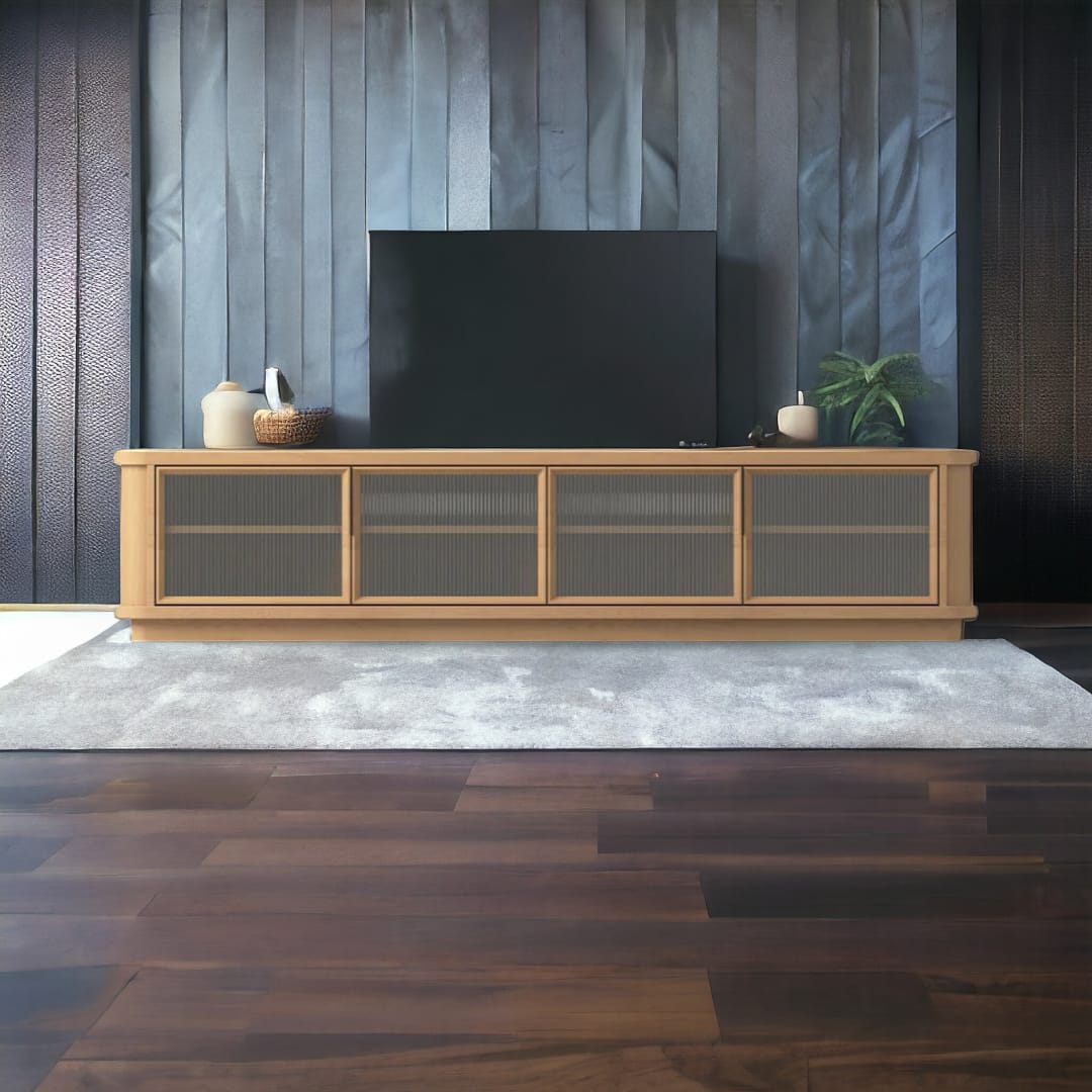DRAGON – Meja Tv Kayu Jati / Cabinet Tv Ruang Penyimpanan / Rak Tv Minimalis Pintu Kaca