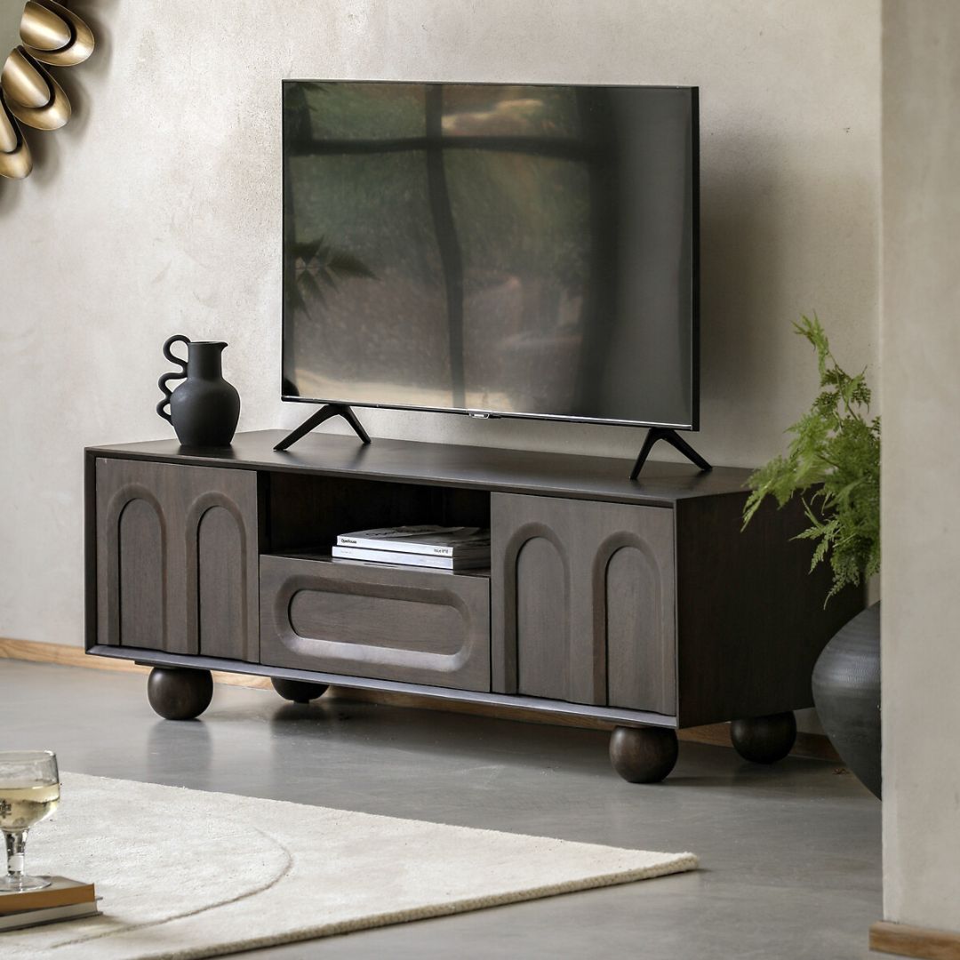 Hadirkan keanggunan modern ke ruang tamu Anda dengan meja TV kayu jati minimalis ini. Menampilkan dua ruang penyimpanan di sisi kanan dan kiri, serta ruang penyimpanan terbuka di bagian tengah yang ideal untuk menata perangkat dan dekorasi. Dilengkapi dengan laci penyimpanan tambahan dan kaki bentuk bulat yang elegan, meja ini menawarkan kombinasi fungsionalitas dan desain yang chic. Finishing kayu jati memberikan sentuhan alami yang hangat dan stylish.