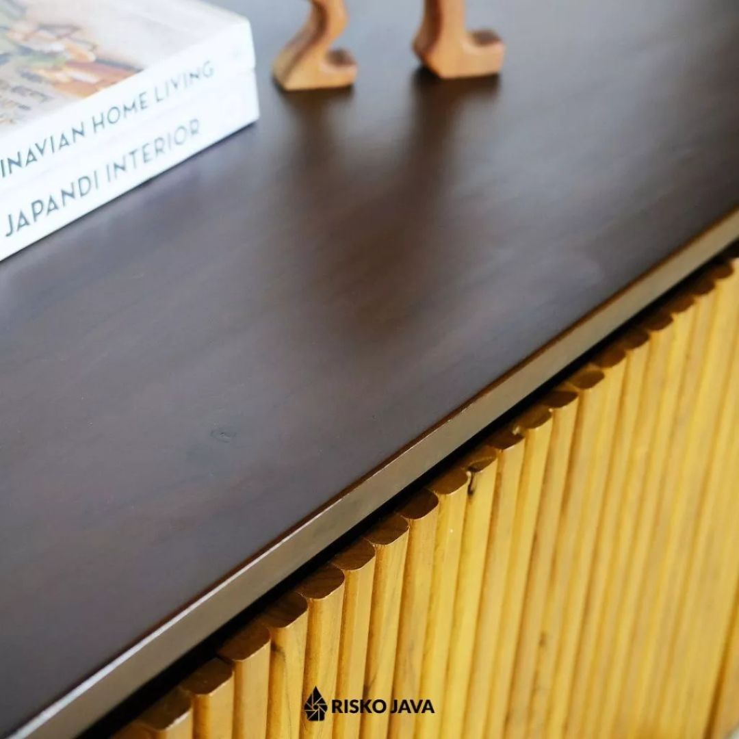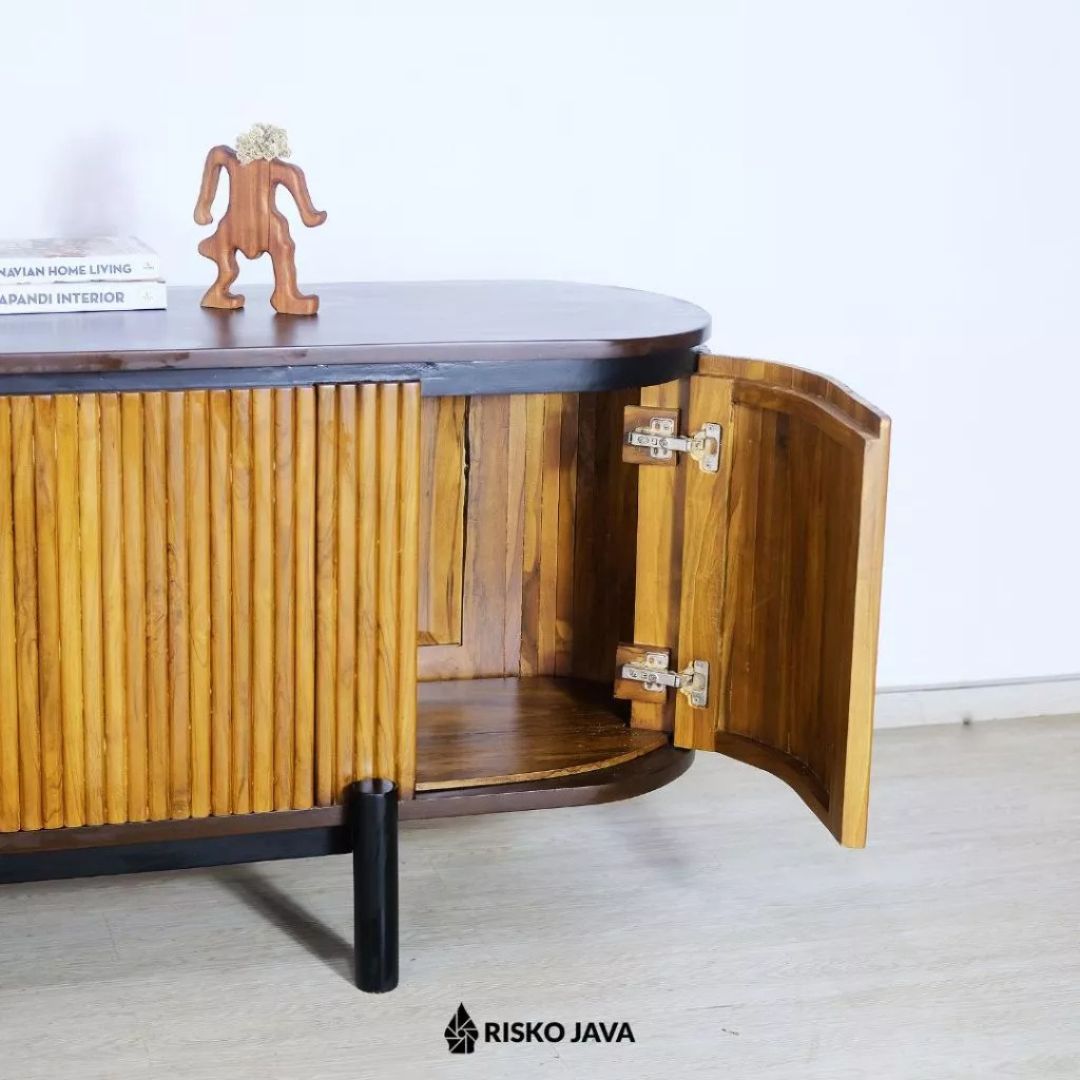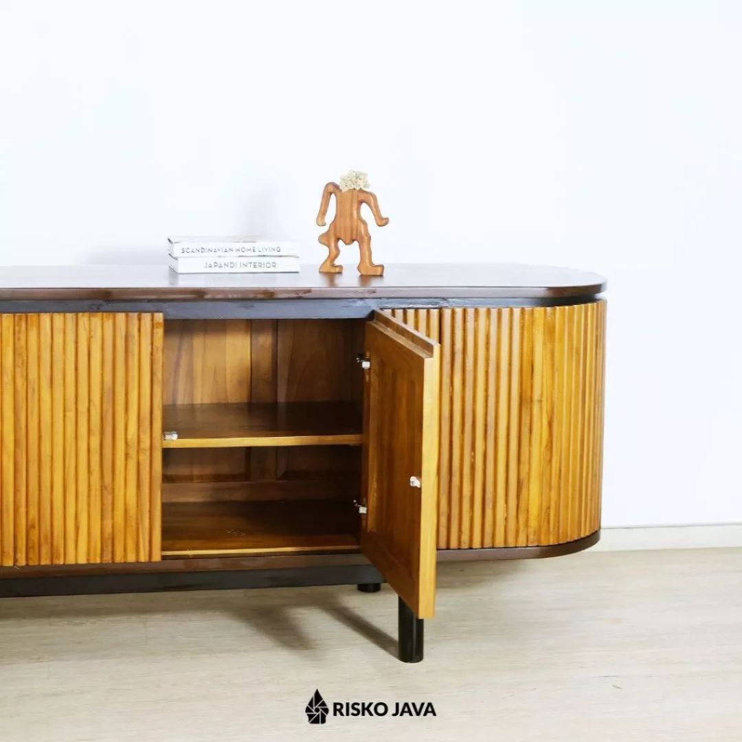 Tambahkan sentuhan hangat dan berkelas ke ruang hiburan Anda dengan Meja TV NATALIA dari Risko Java. Terbuat dari kayu jati Perhutani pilihan, meja ini tidak hanya menampilkan keindahan alami kayu, tetapi juga memberikan kekuatan dan ketahanan luar biasa. Selain itu, desain salur minimalis bergaya retro mampu menghadirkan atmosfer klasik sekaligus tetap modern. 🌿