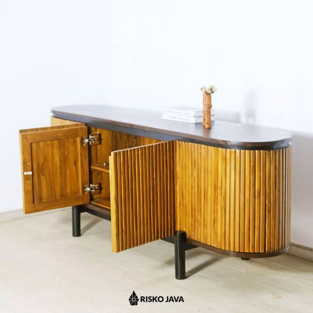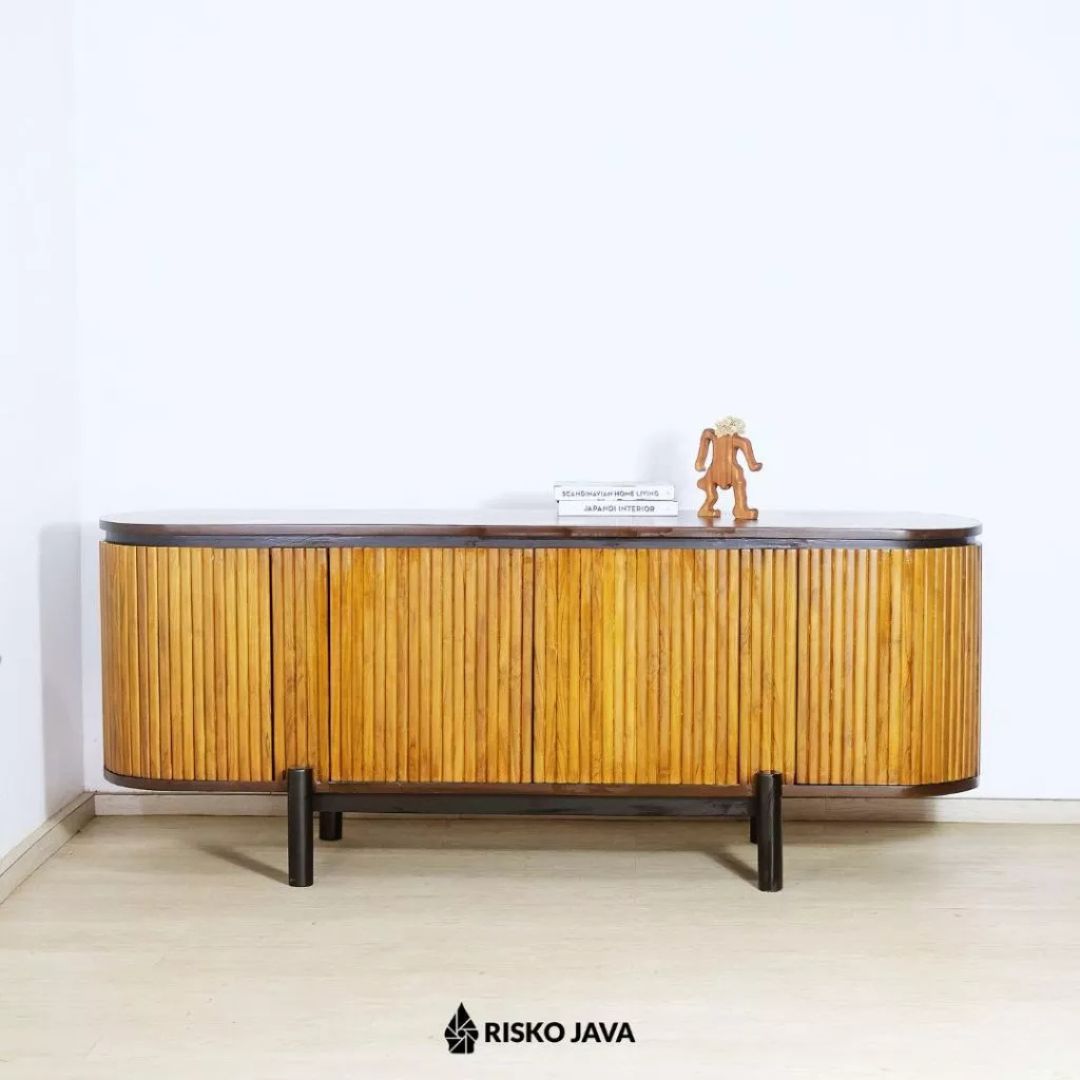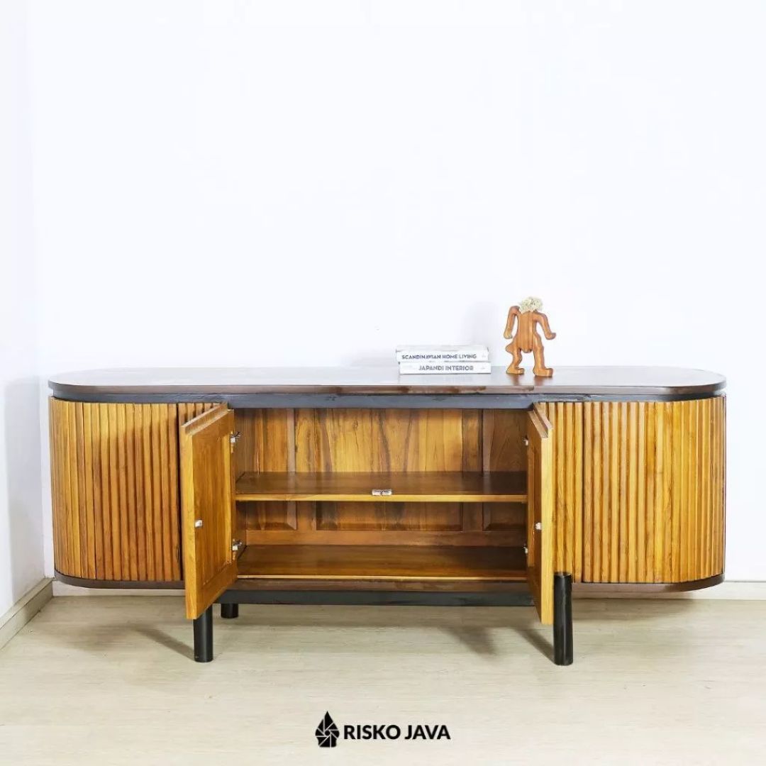 Tambahkan sentuhan hangat dan berkelas ke ruang hiburan Anda dengan Meja TV NATALIA dari Risko Java. Terbuat dari kayu jati Perhutani pilihan, meja ini tidak hanya menampilkan keindahan alami kayu, tetapi juga memberikan kekuatan dan ketahanan luar biasa. Selain itu, desain salur minimalis bergaya retro mampu menghadirkan atmosfer klasik sekaligus tetap modern. 🌿