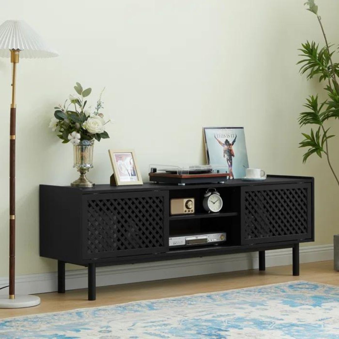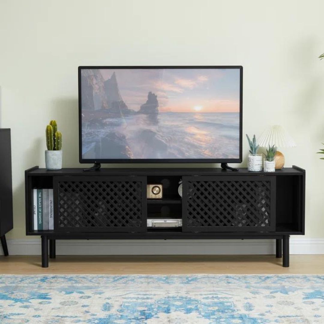 Tambahkan sentuhan retro yang elegan ke ruang tamu Anda dengan meja TV kayu jati minimalis ini. Desainnya menampilkan ruang penyimpanan di samping kanan dan kiri dengan pintu sliding yang praktis, serta dua ruang penyimpanan terbuka di bagian tengah untuk menampilkan dekorasi atau perangkat. Finishing natural black memberikan kehangatan dan keindahan alami yang menyempurnakan tampilan retro modern. Ideal untuk menciptakan gaya yang chic dan terorganisir di rumah Anda.