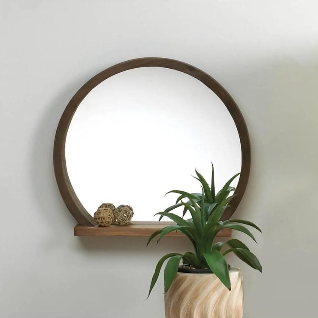 MATILDA – Cermin Bulat Kayu Jati / Cermin Kayu Jati Minimalis / Hiasan Dinding Aesthetic