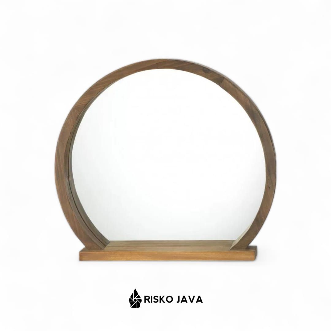 VISCA - Cermin Kayu Jati / Cermin Bulat Minimalis / Cermin Hiasan Dinding