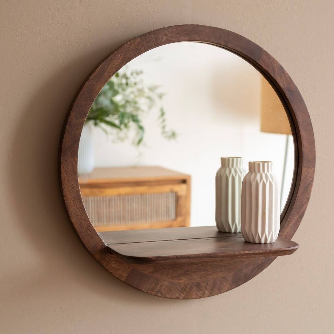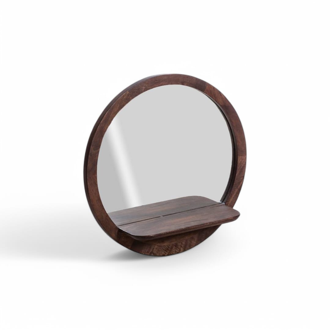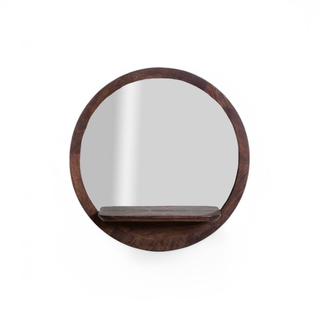 Hadirkan keindahan dan fungsionalitas dalam satu desain! Cermin dinding bulat ini dibuat dari kayu jati solid dengan tambahan rak terbuka di bagian bawah, ideal untuk menyimpan aksesori, parfum, atau dekorasi kecil. Desain minimalisnya cocok untuk berbagai gaya interior, memberikan sentuhan hangat dan modern pada ruangan. Sempurna untuk mempercantik area foyer, kamar tidur, atau ruang tamu dengan kesan elegan dan rapi!
