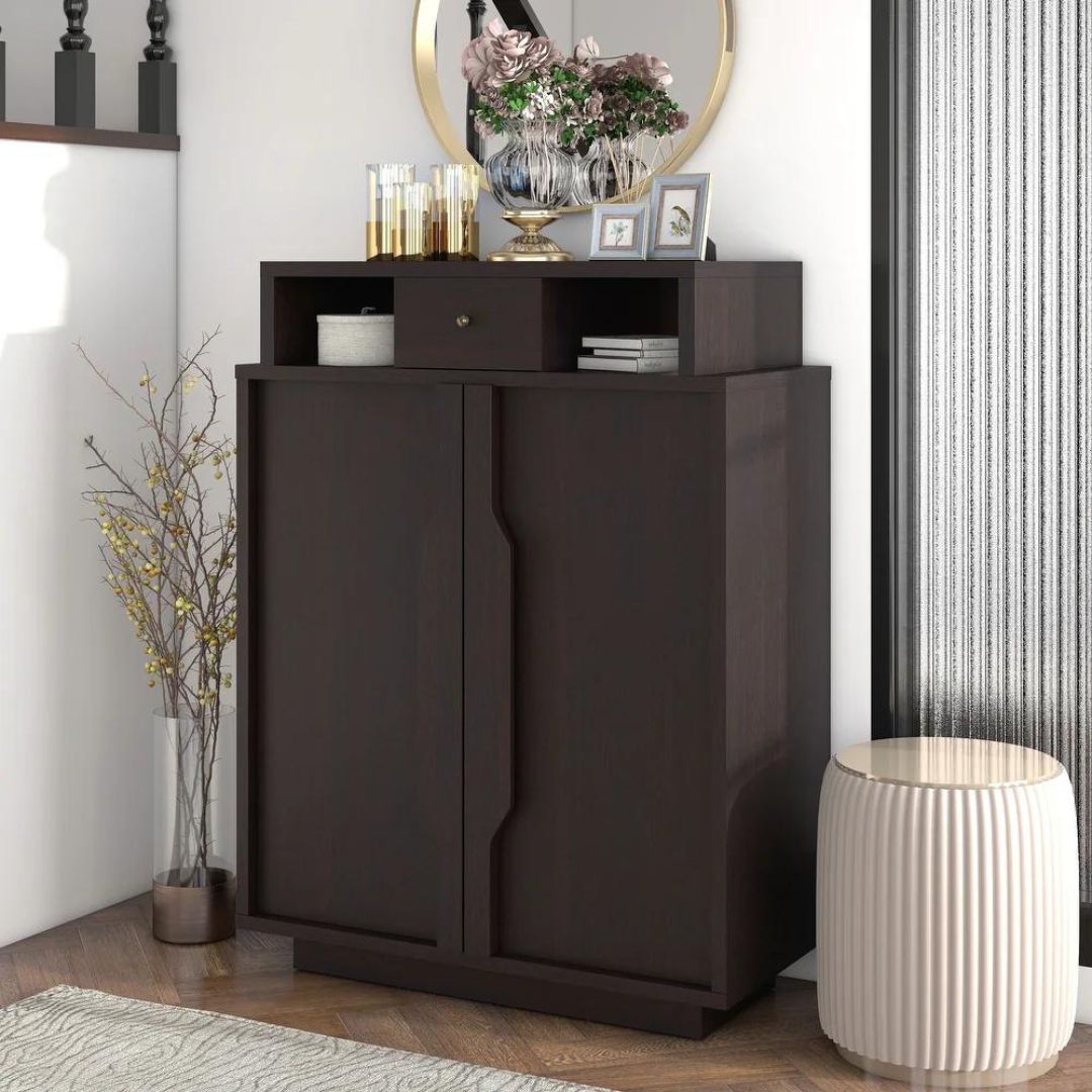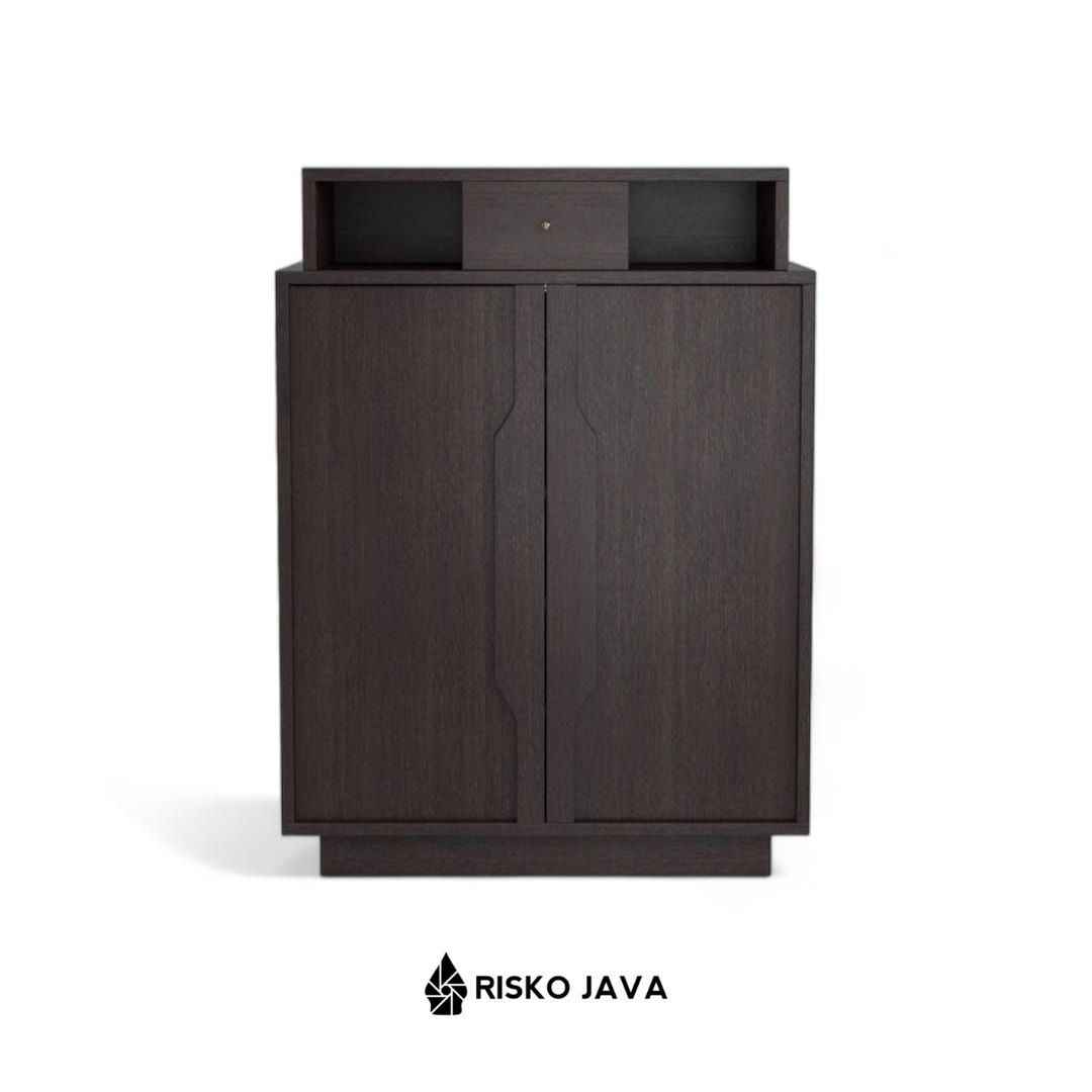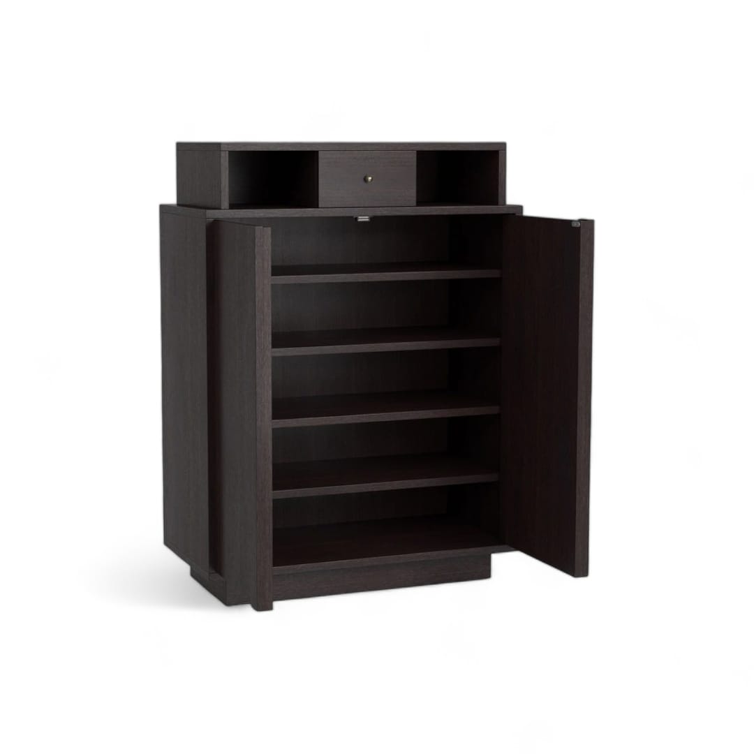 LEANDRO – Rak Sepatu Minimalis / Cabinet Sepatu Natural Black / Tempat Penyimpanan Sepatu Kayu Jati