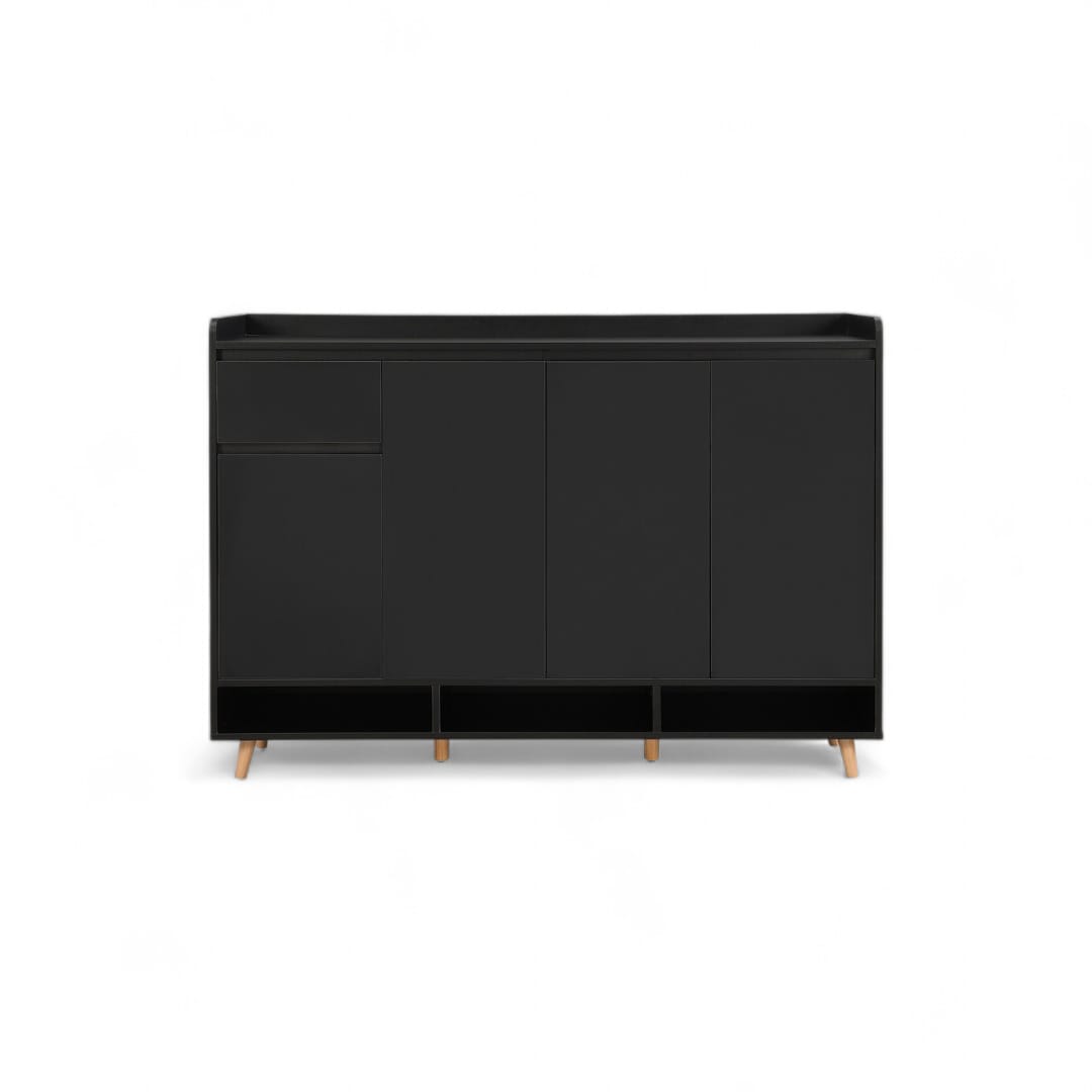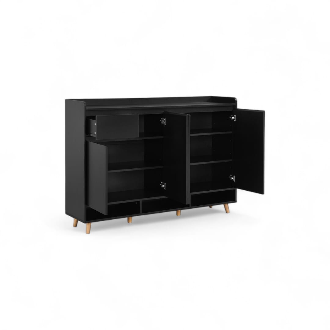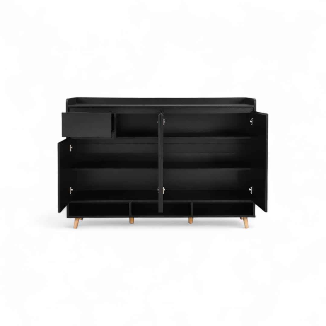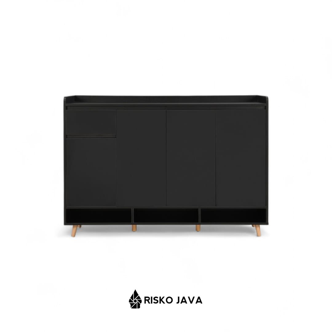 Rak sepatu kayu jati minimalis modern ini adalah contoh sempurna dari desain yang fungsional dan elegan. Memiliki 2 ruang penyimpanan utama dengan pintu untuk menjaga sepatu Anda rapi, serta laci penyimpanan di bagian atas untuk barang-barang kecil. Dilengkapi dengan ruang penyimpanan terbuka di bagian atas untuk akses mudah dan dekorasi tambahan. Finishing natural black menambahkan sentuhan sophistication pada desainnya, menjadikannya pilihan ideal untuk menata sepatu sambil menyempurnakan tampilan interior Anda.