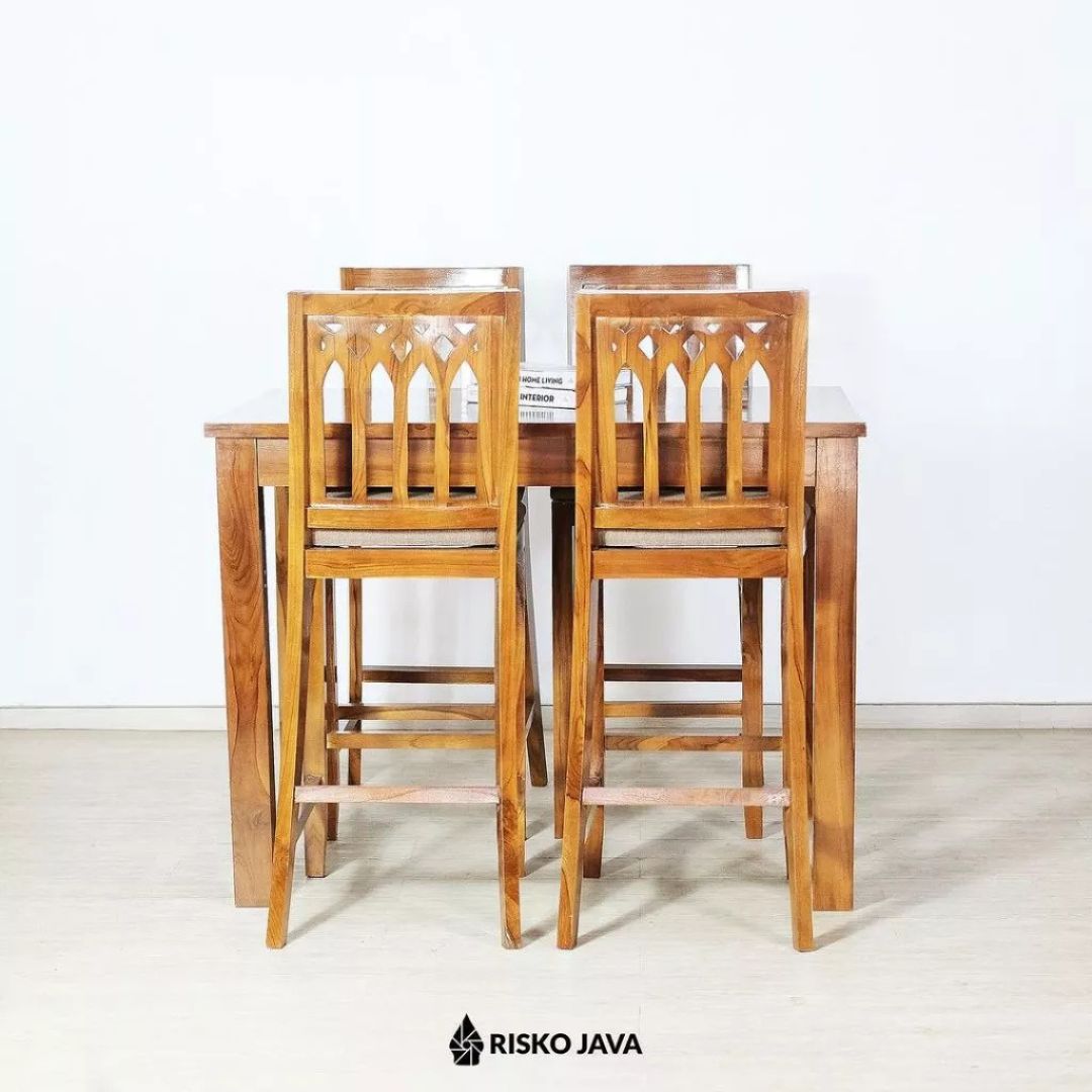 ✨ ANGILERI Dinning Set Kursi Bar Kayu Jati Minimalis