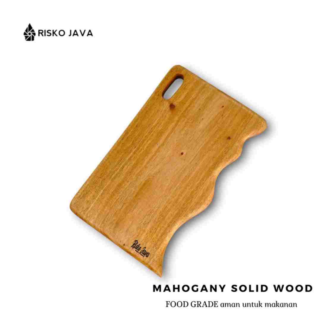 Talenan kayu mahoni food grade juga memiliki ukuran yang ideal untuk berbagai keperluan memotong dan menyajikan makanan. Desainnya yang elegan dan alami memberikan sentuhan estetika pada dapur Anda, menjadikannya tidak hanya alat praktis, tetapi juga elemen dekoratif yang menarik.