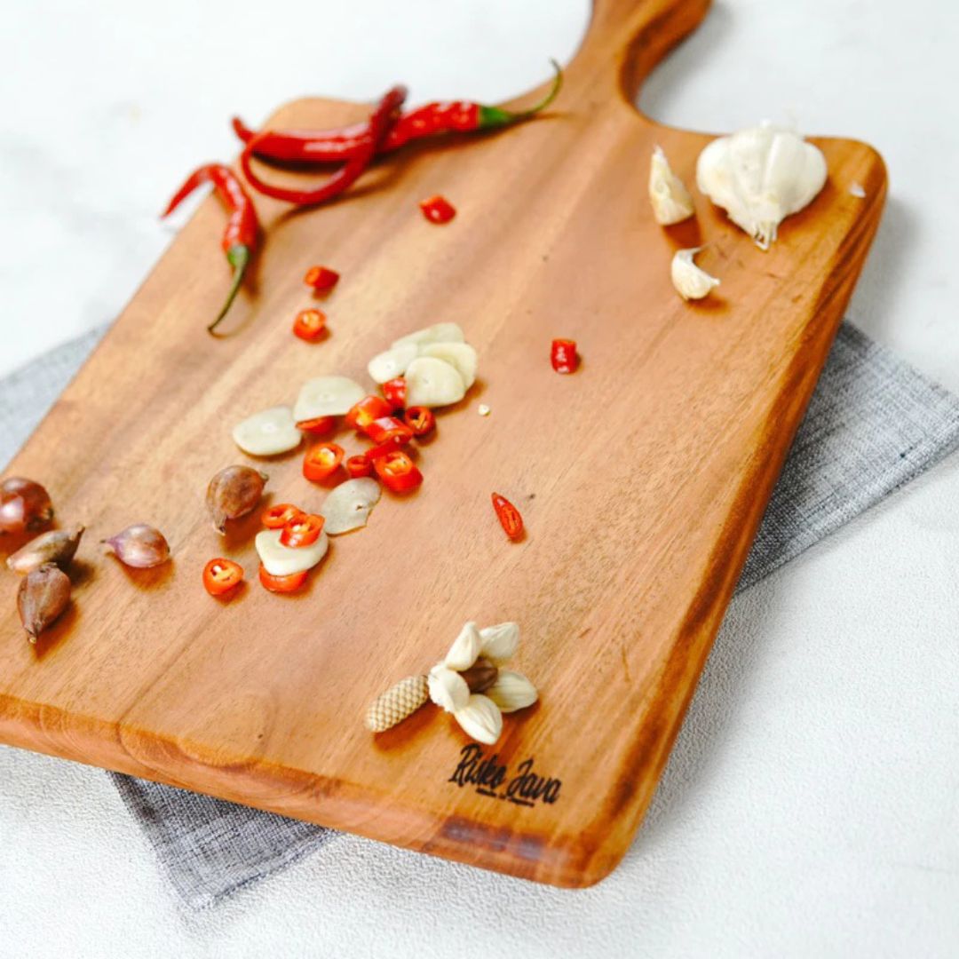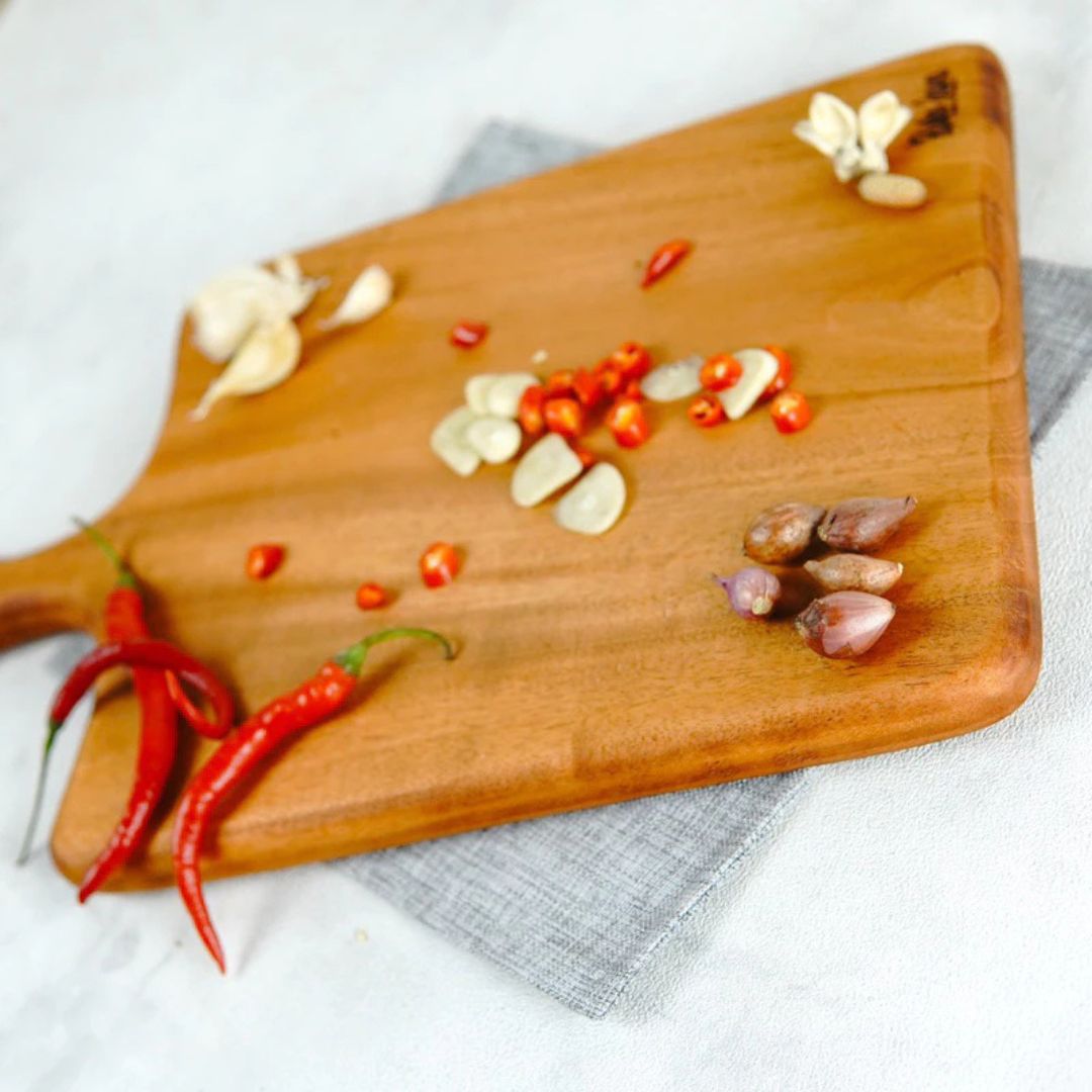 Talenan kayu mahoni food grade juga memiliki ukuran yang ideal untuk berbagai keperluan memotong dan menyajikan makanan. Desainnya yang elegan dan alami memberikan sentuhan estetika pada dapur Anda, menjadikannya tidak hanya alat praktis, tetapi juga elemen dekoratif yang menarik.