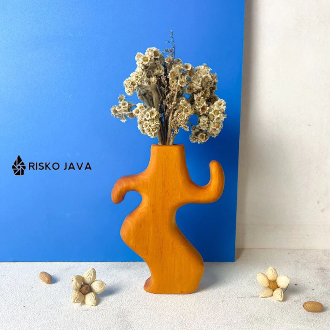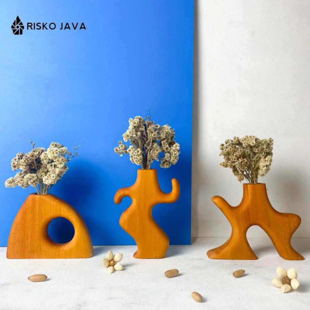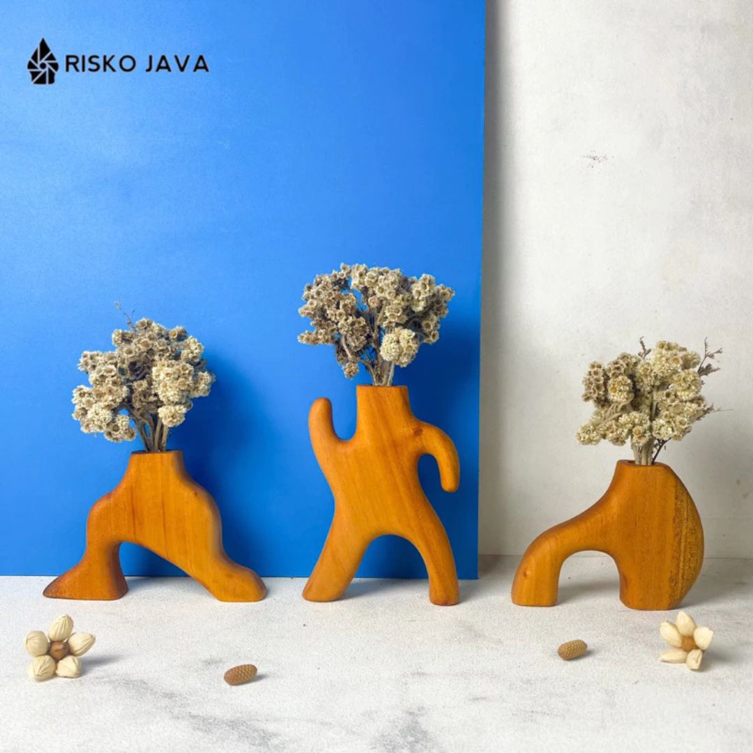 DJANI - Vas Bunga Kayu Mahoni Minimalis / Hiasan Dekorasi Unik